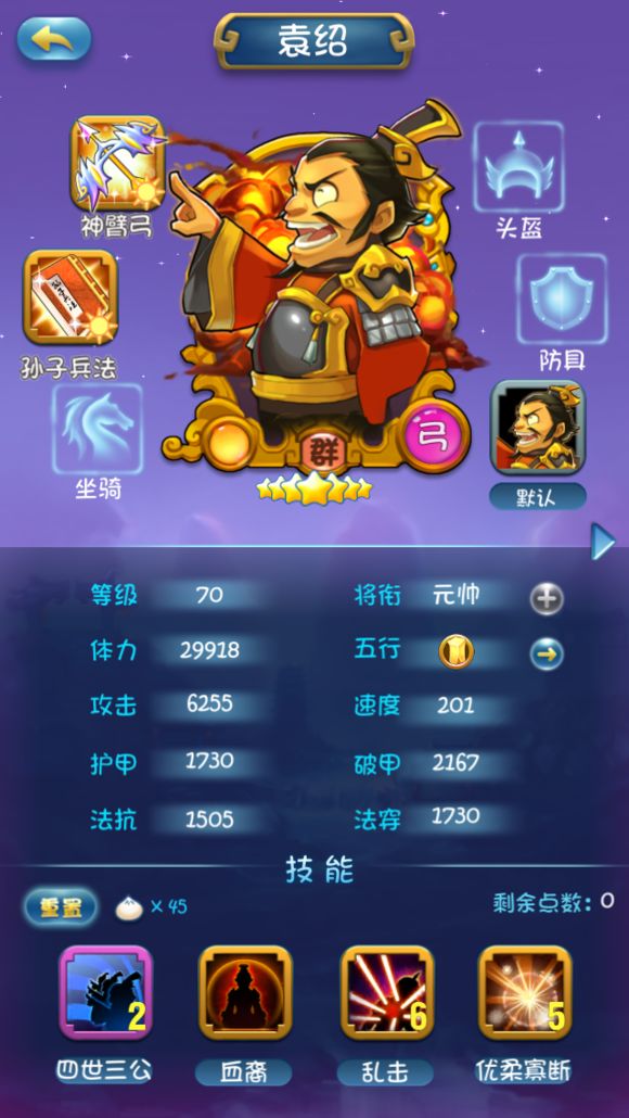 作者:玩家 ,纯辅助型武将,1技能打后排,2技能打单人,3技能加全队攻击,4技能加全队速度,用处不大,除了刷钱的时候搭配我从来不用她,所以34加点,没事儿的时候练起来做成就就行了。 刘禅,小名阿斗,强调小名也是因为也只有这个“阿斗”技能有点用,4技能全队加30%攻击,是游戏里攻击力加的最高的辅助,使用频率同上,只有打钱的时候有用。前三个技能随便点,一点用处没有。 这里简单解释一下为什么会把羊驼
