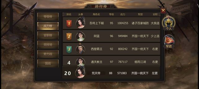 大氪玩家:采购侧重顶级阵容和满配养成,锁定稀有武将与装备。充值可选328档团充,既能拿到秦始皇、西楚霸王、美人虞姬、周武王、颜回等顶级武将完成10天充值还能额外获3名顶级武将。下面推荐几个阵容:重铸赵:七雄武灵王+武安君李牧+鹖冠子+百里奚+秦始皇重铸吴越:五霸阖闾+五霸勾践+神剑越女+九术文种+剑师莫邪重铸吴:吴起+白发伍子胥+五霸阖闾+百里奚+剑师莫邪楚国:西楚霸王+美人虞姬+楚庄王+齐桓公+养由基周国:周武王+晋文公+齐桓公+颜回+鬼谷子(庄子)菜刀秦:秦始皇+秦穆公+白起+百里奚+张仪穆公齐:秦始皇+秦穆公+齐桓公+管仲+孙膑(二专的管仲特别肉)祝战国手游越来越好,多出团购活动。