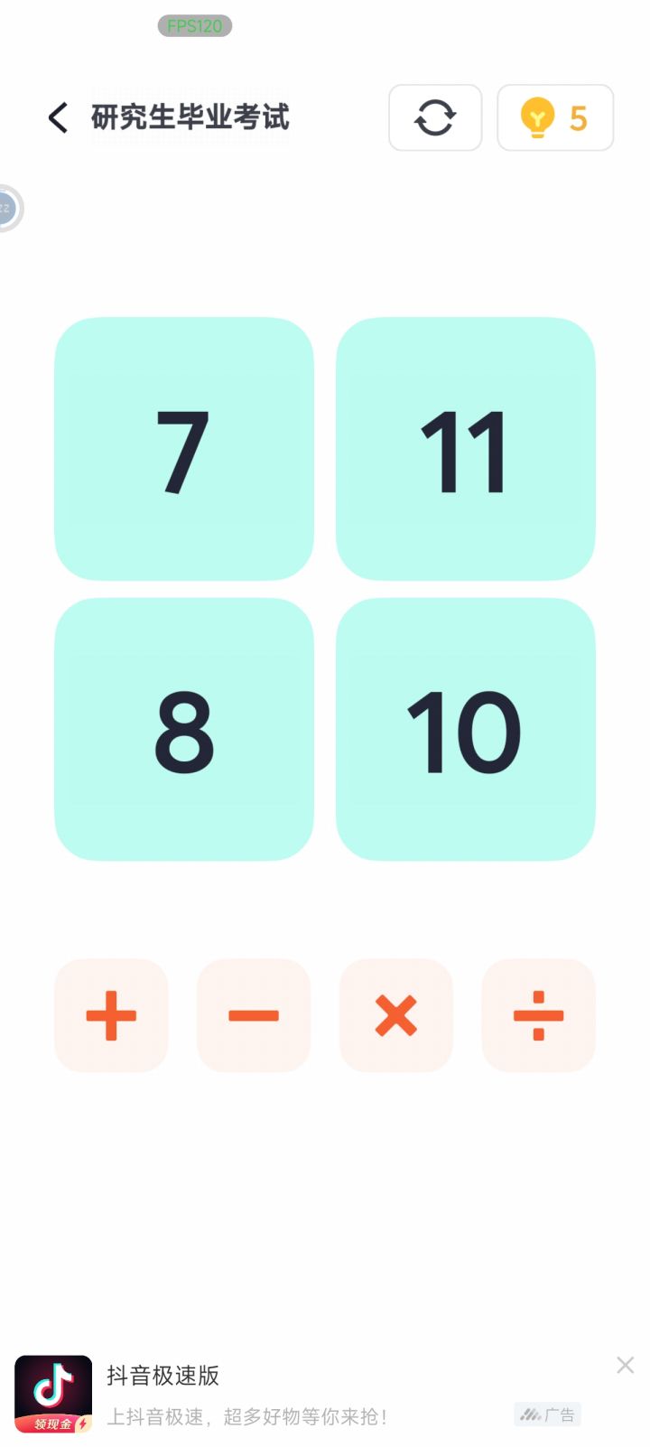 #算24点 一分钟以内真的是纯运气,有两道题重复了两次