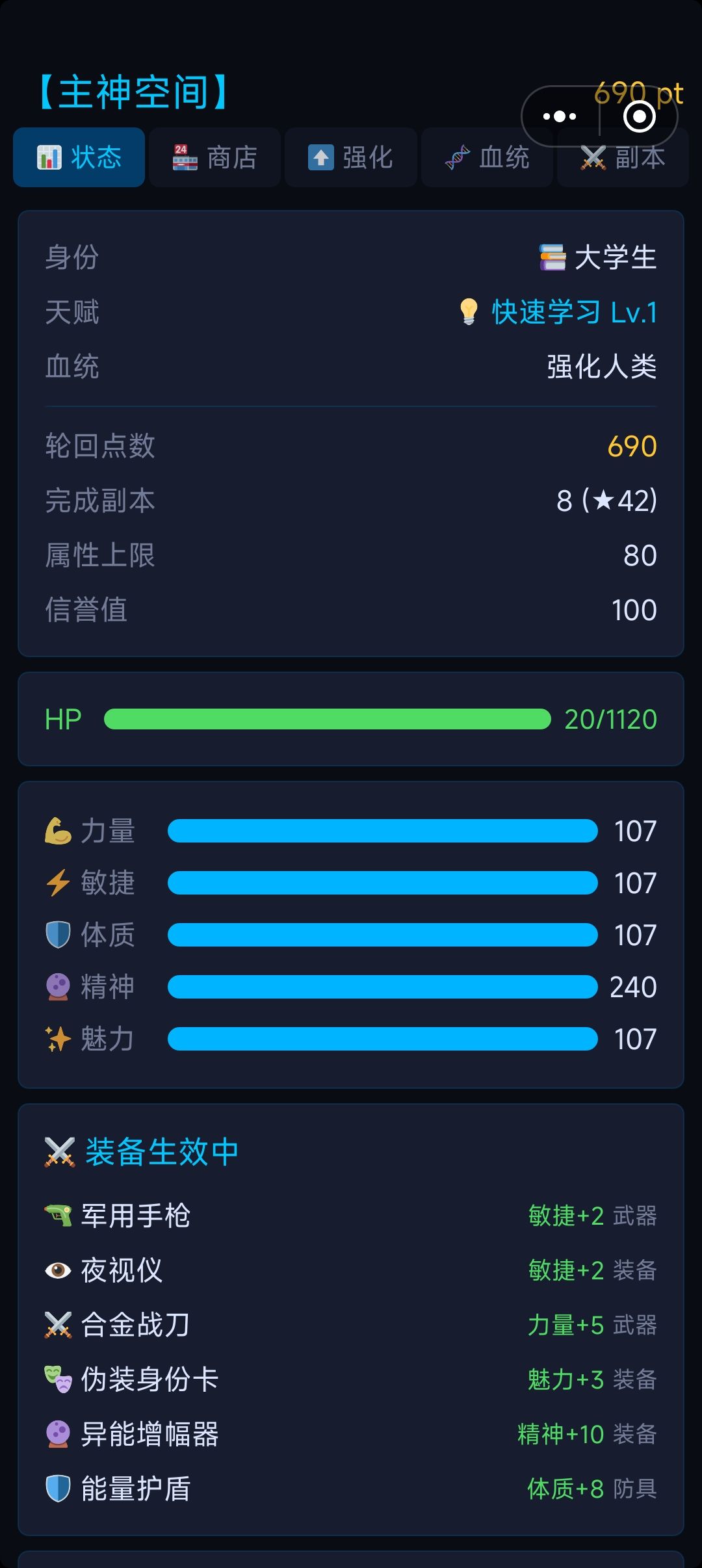 —————————————— 好 那么就让我来简单说两句 此线对于武力需求较高,所以我推荐的官职路线为下: 裨将军—县令—牙门将—校尉—都护—监治谒者—中郎将—护军将军—散骑常侍—黄门侍郎—御史中丞—四镇将军—四征将军—尚书郎—五曹尚书—尚书扑射—尚书令—大都督—上大将军—大司马 仅供参考 ———————— 此为新手难度属性需求 需求会随难度增加2-3点 「天生神力」 「九原踢馆」 「投奔丁原」 「