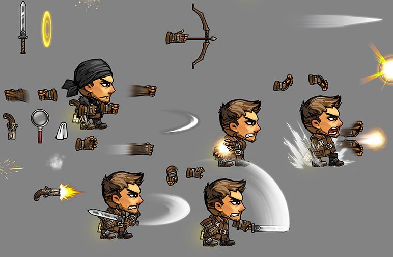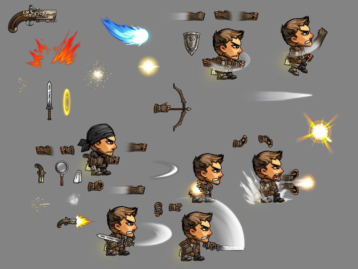 攻击动作总算告一段落,还有一部分武器是共用的动作就不发了。gif帧数有限有些动作比较快有丢帧现象凑合看吧!