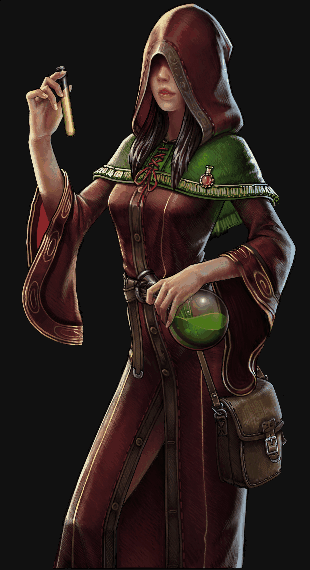炼金术士-神秘的女人,擅长玩弄毒药和化学,旅行至小镇后停留下来,在进行实验之余,提供附魔服务。