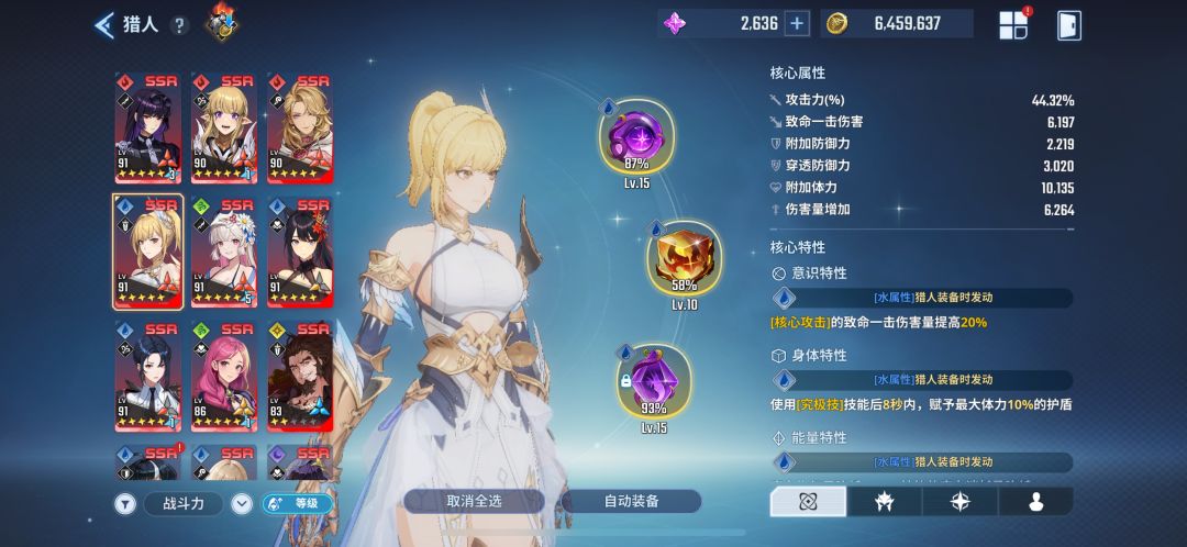 图1,2中技能金色优先,图3祝福优先金色二次觉醒和破碎,剩下的哪个战力高带哪个,同战力情况下优先攻击,伤害类祝福。图4红圈需要材料尽量刷,使劲刷,后期提升战力主要途径。图5猎人装备优先8件套装,战力比混搭高,有些混搭部分图有部分提升,但不建议萌新没有刷出极品属性的时候搞,对提升并不特别明显,尤其是手机党。后期资源多了可考虑极限。图6是星,每周一结,目前最高也到不了3500,前期只为过图经验,星可以