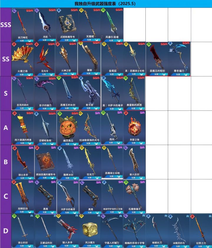 我独自升级最新猎人及武器、影子强度表