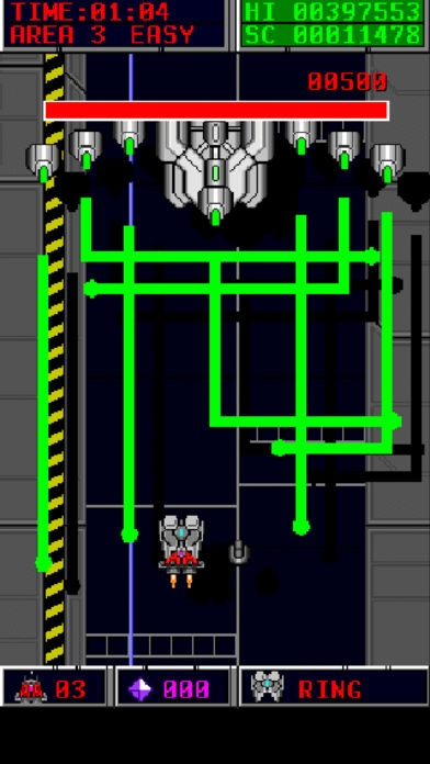 多彩な武器で7つのエリアを戦略的に攻略する、イメージファイトをオマージュしたレトロな縦スクロールシューティングゲームです。アーケードモードに加え、3分間スコアアタックのキャラバンモードがあります。