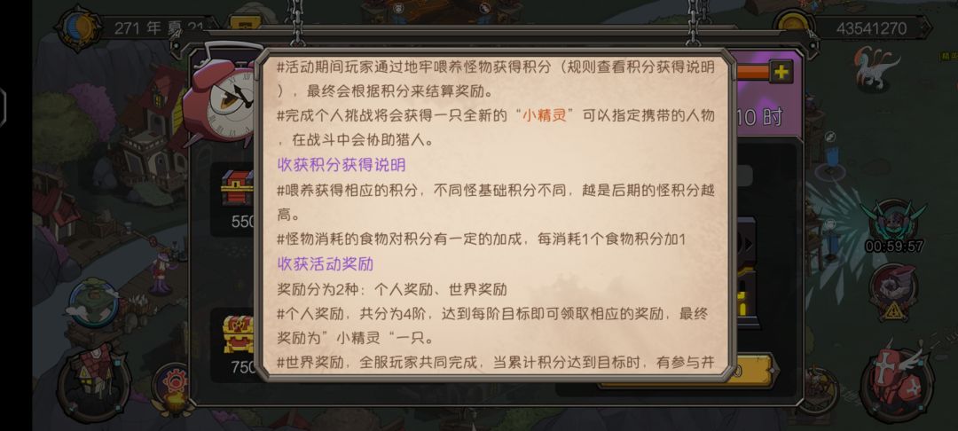新的精灵活动终于出现了,出现了,出现了。精灵活动对新手还是很友好的,打满七天的基础上能打过努美利娅精英或者艾斯皮娅精英怪基本就能获得精灵了。如果嫌弃精英怪刷新太慢(不下线两个普通怪之后刷新一个精英怪,以此循环),可以直接去刷普通冰龙也可以获得。 只有通过下图划线内图标选择出战,再任务完成后才能获得积分。(同一出战目标多次安排猎人会额外扣除活动次数,请不要轻易尝试) 活动精灵需要8000积分,持续七