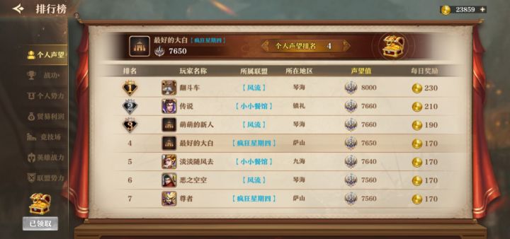 《联盟纷争》排行榜