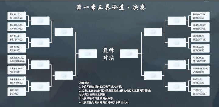 第一季三界论道大赛之决赛对阵表新鲜出炉!