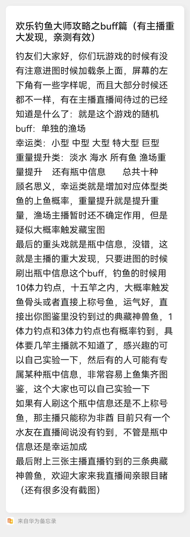 还真别说我有一次刷出的瓶中信息叫钓鱼佬永不服输然后反手就给我来了一张500体力的藏宝图