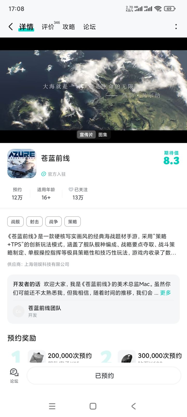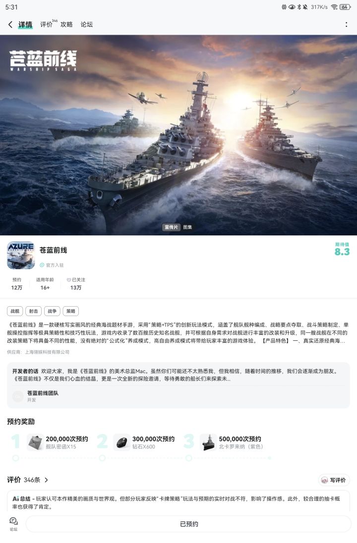 对《苍蓝前线》充满期待,希望游戏人气爆棚,越来越火!