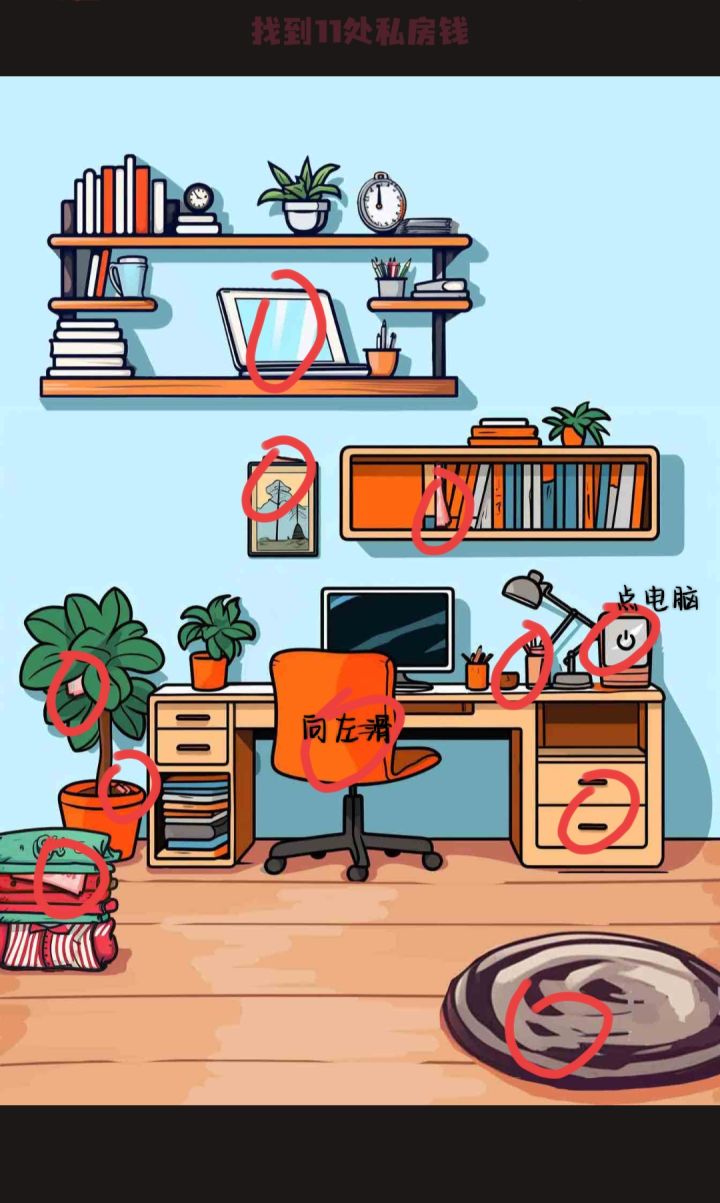 找私房钱那关,看广告都只给10处,结果题目让找11处
