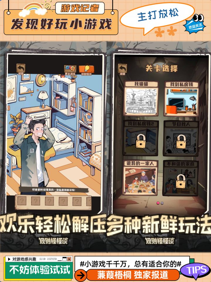 🎮 游戏名字:规则怪怪谈🔍 游戏类型:益智+解迷+推理✅ 游戏状态:目前已上线!下载即可体验!🌈🌈🌈🌈🌈这是一款有趣的解谜游戏,游戏在玩家扮演一名侦探,在诸多的奇怪事件中探索房间,获取其中的道具和线索,找到关卡中隐藏的秘密。安利给喜欢解迷和推理党的玩家!✨✨✨✨✨——💞💞简介无力,欢迎亲自入坑体验!#TapTap年度游戏大赏应援 #游戏安利 #游戏推荐