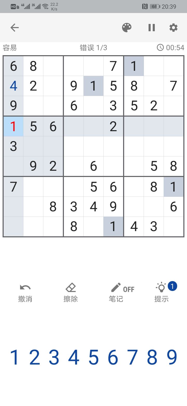 一下子玩了一整个下午,通关了个数独冒险活动。容易到困难都随便过了,专家级还是有点难,用了一个提示才过的。广告有点多。