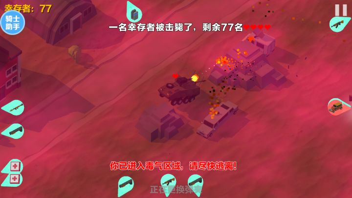 汽车大逃杀2相比1来说变成了联机游戏,内容也变成了吃鸡游戏,像素版的大逃杀,载具也有人数一局30人,可以组队最多3人,而且自带语音,但在一开始的监狱会有杂音,