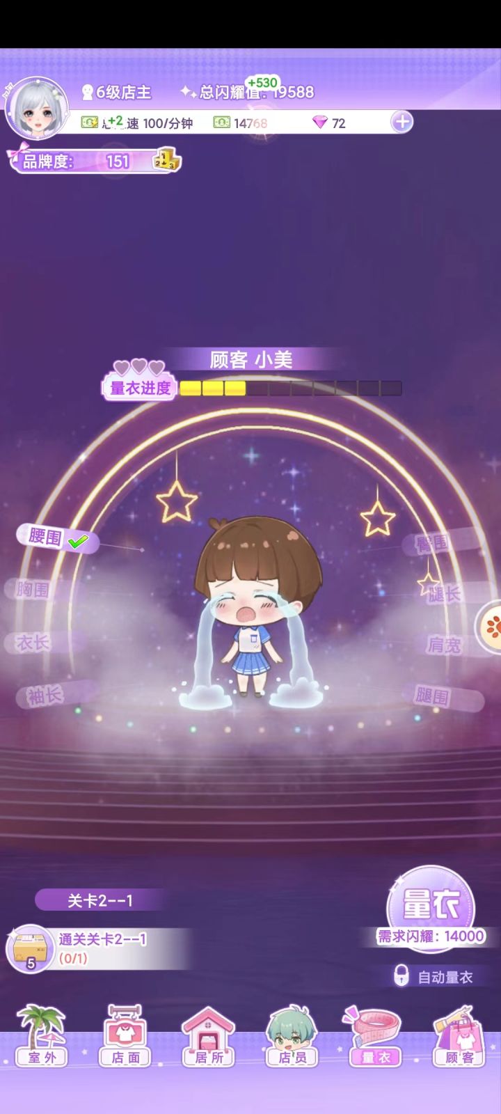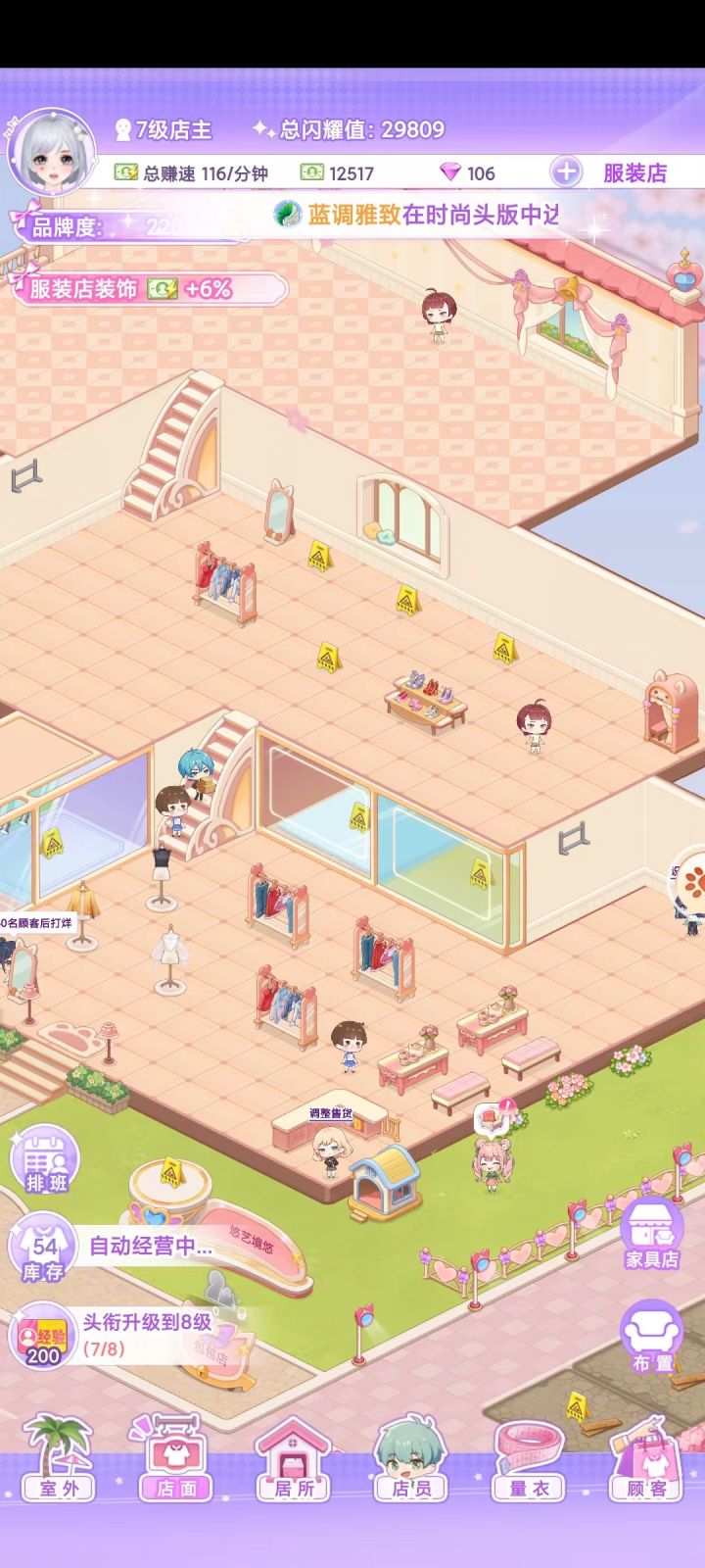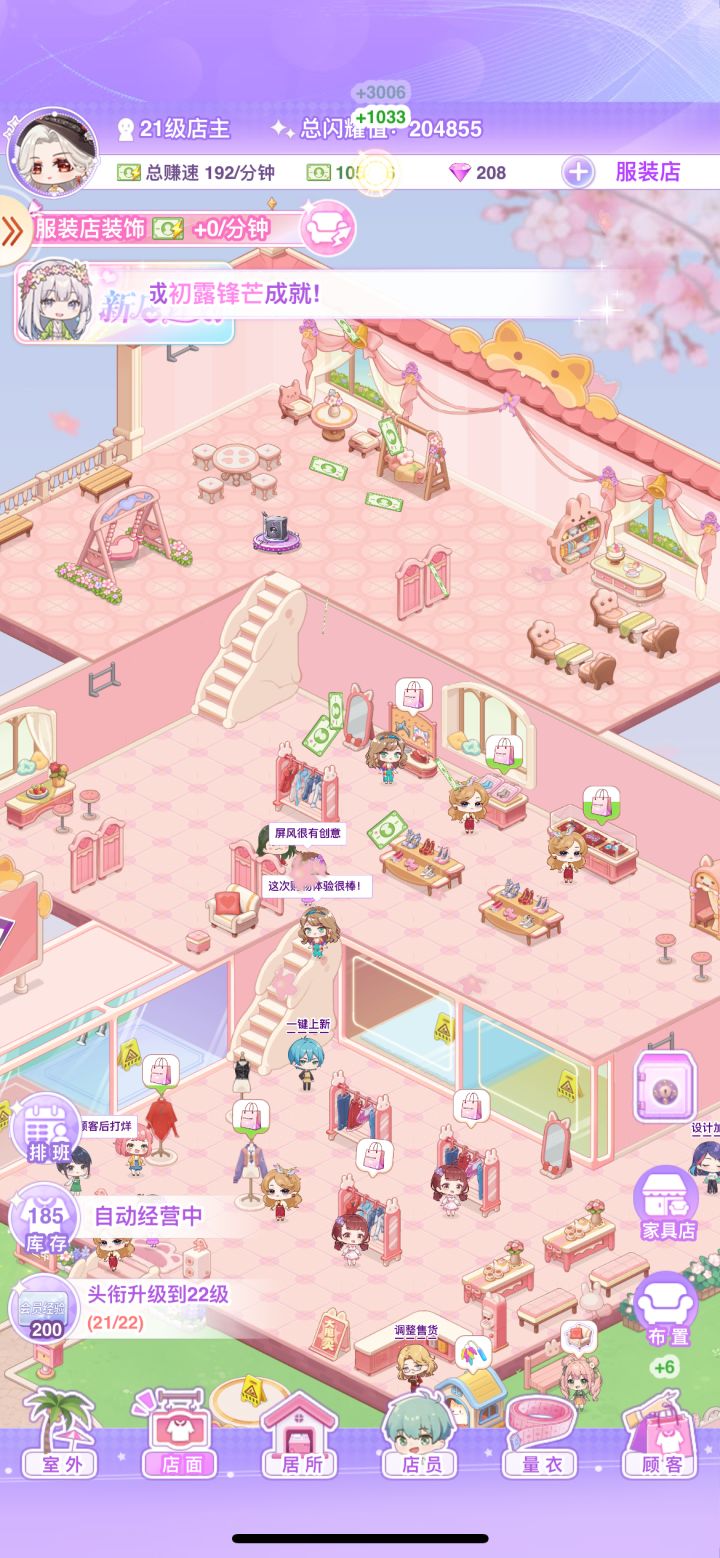 优点:服装很多也很好看,顾客小人儿和店铺很可爱;有员工宠物等是升级获得,其他途径较难获取,因此这个游戏不肝,适合挂机;小关卡玩法会根据等级一步步解锁也不难;