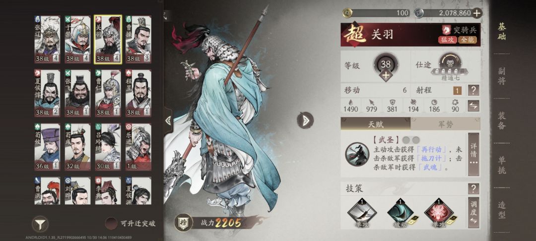 UID:10260002139 剧本等级:30级 金坛奇正,得之於怀抱,玉钤攻取,无劳於积习,祭遵儒术,未足方其雅歌,曹仁智勇,才可用其胜。 当我第一次看到曹仁的那个技能面板时,我心里只有一句话:将军真乃天神下凡。将军虽然自带超高面板但技能仅仅只有回血,增伤,增防,减防,真伤,护盾,位移,再动,不被反击和范围增益,还能斩敌将如杀鸡屠狗,这还是削过的效果,在下实在是佩服佩服。 武将简介:可以#三国望神州