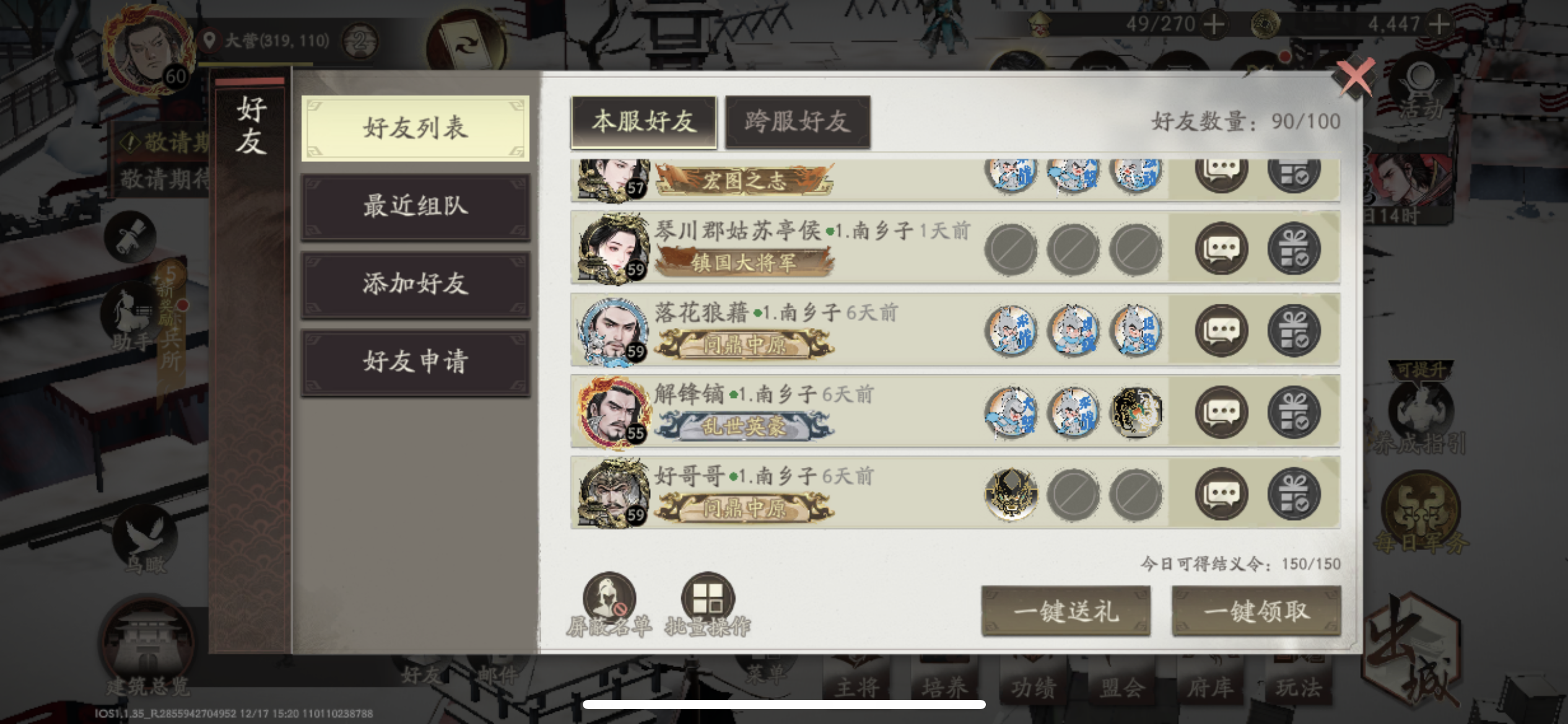 作为平民零氪玩家,自己运气也不是很好90抽才出个吕布,曹性是赞的部将币买的,看见吕布池就想抽,又怕抽完没结果,吕布池感快过去吧,忍耐很难受的,曹性升星是没啥办法了,吕布是可以每天赞赞升星的,纠结死了,羡慕那些用很少的抽抽出很多吕布的玩家,就我现在的抽数过年都不带怕的,还是忍忍吧