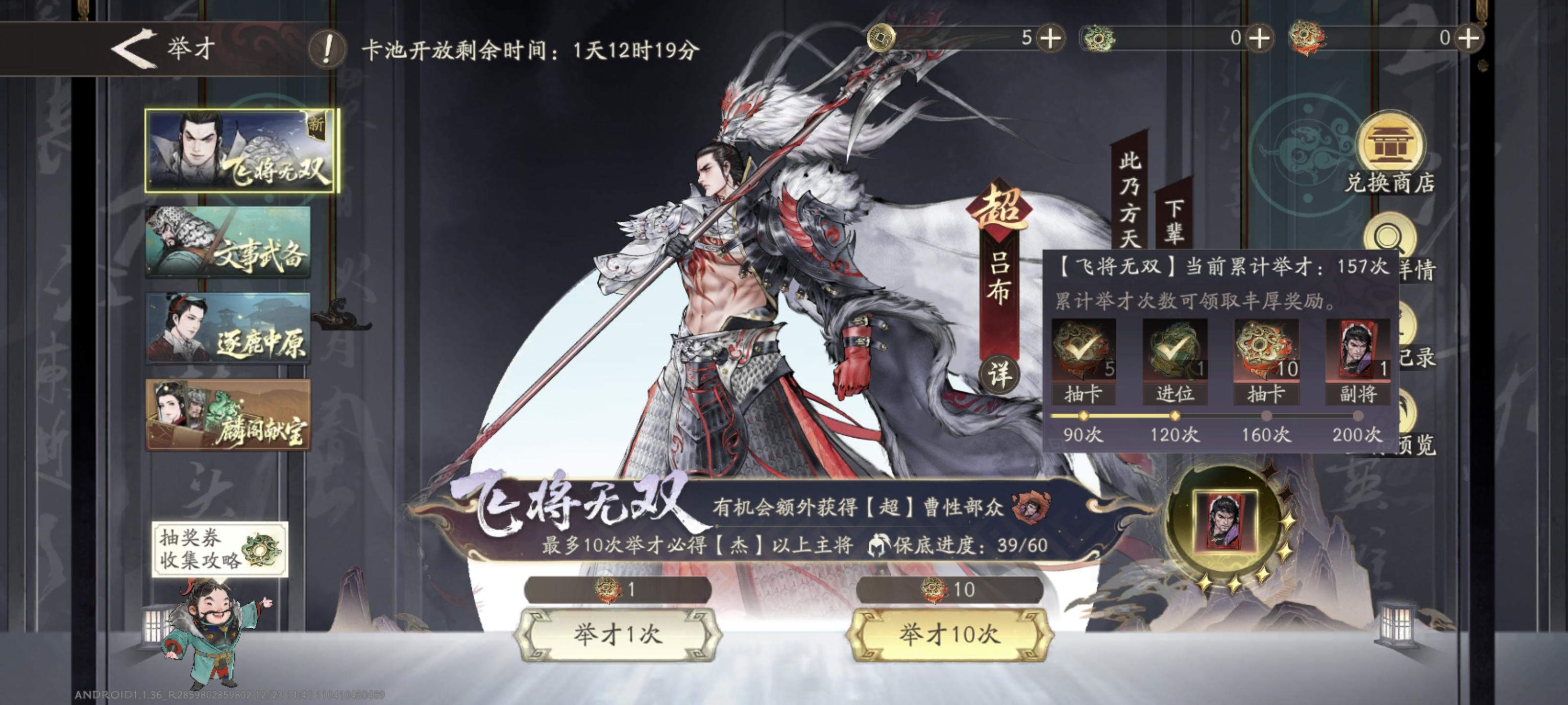 周本已通,比上周的简单。话说吕布越级打高难本也很猛啊,数值给得够多了,建议最好还是抽一下