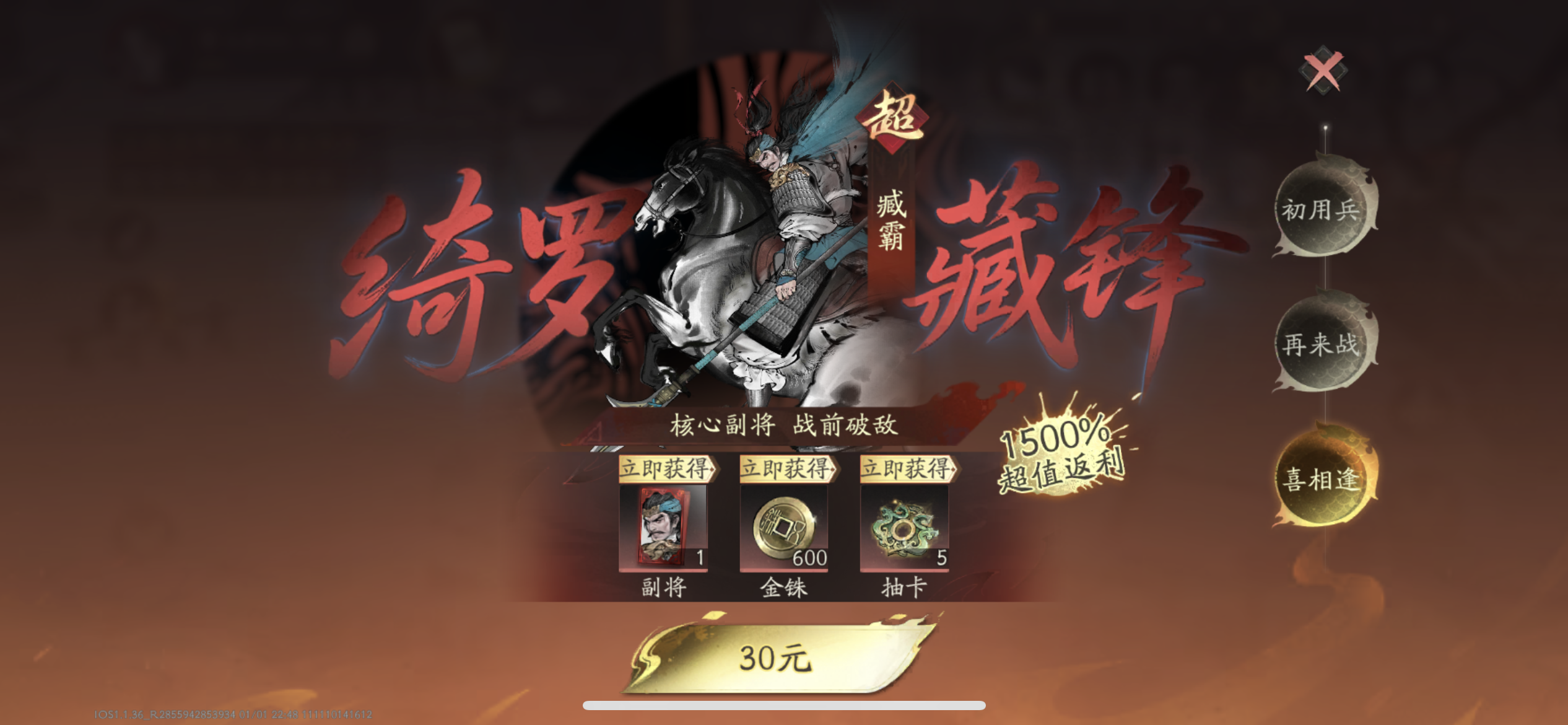 这游戏的筛选机制真的牛。每一次卡池都是一次筛选。运气差的玩家除了弃坑好像也没什么太多选择。满星角色八个本体。两个副将,一共十六个本体。二十四个本体组成一个完整角色那是不可能的,还要六个龙骧印,外加兵营里面的专属兵种。就这样,运营甚至不愿给玩家一个角色本体。我能强烈的感觉到,这游戏的运营对低氪度玩家真的非常厌恶。某站前阶段不是出现什么“乞丐”言论吗?能说出这种话的什么成分相信大家都