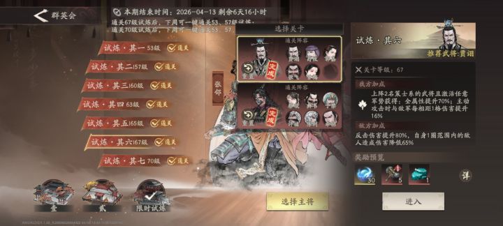 最后两关都是,全靠郭嘉一下一个人头拉扯过的。。。在这个3.0英雄遍地走的版本,也就只有郭嘉这个原始人还能上场了😁,这周的群英让郭嘉玩家有了点策略的感觉。。。。67的克制完全是瞎扯,一个巧把刘关张克完了👿。