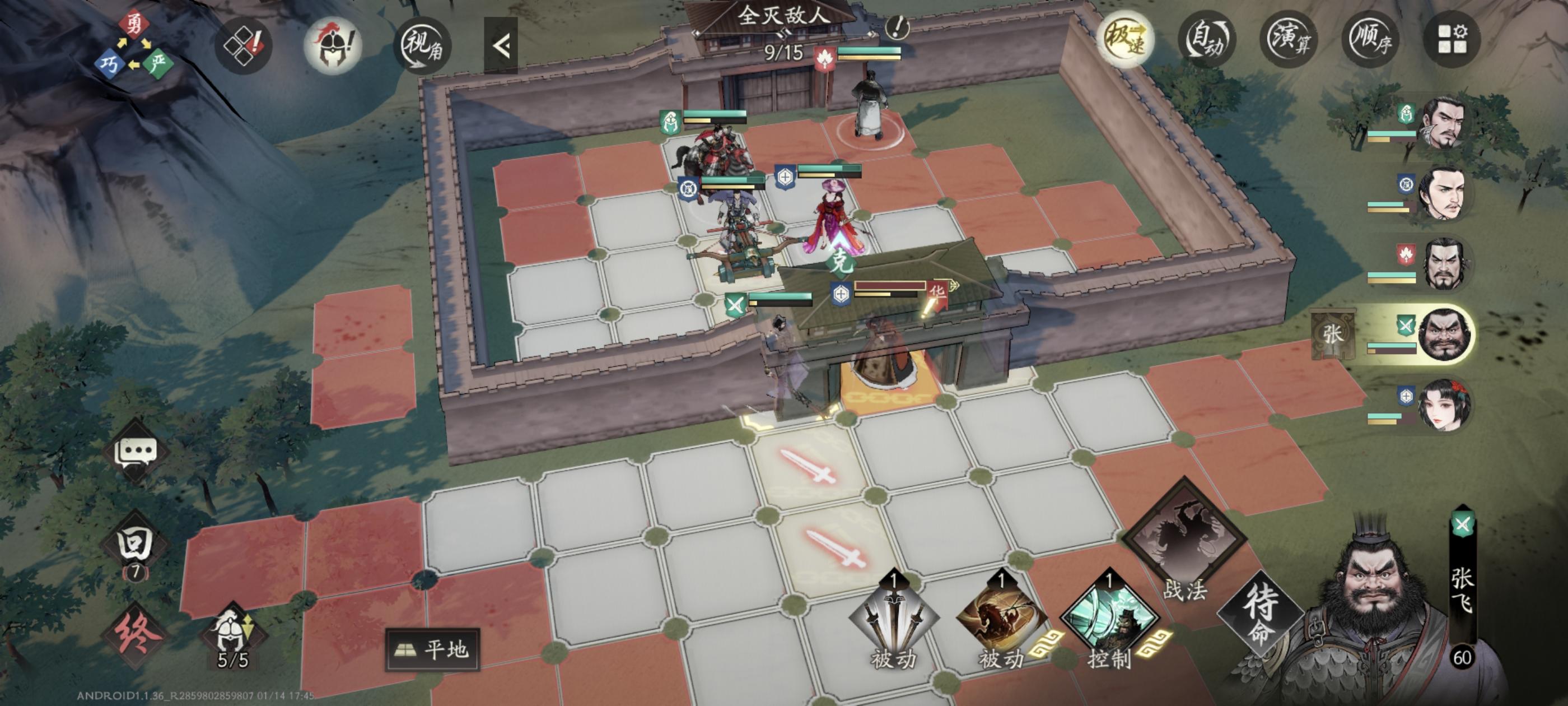 貂蝉2迁,吕布六迁(辕门不能定身也没事,用不上)张飞八迁程昱3迁(捧日能封技)第一回合,陈登先去定身夏侯惇,然后貂蝉再动移动到中间放群。程昱站在陈登身后正好打高顺,然后aoe封技;此时吕布在曹操位置神鬼触发无双,然后移动到陈登右侧替他挡牵招的刀;张飞站到一图曹操位置。平a关羽。曹操上完buff随便第二回合,张飞跑到中间嘲讽高顺吕布。吕布无双辕门射戟打牵招夏侯惇吕玲绮,一下小一半血
