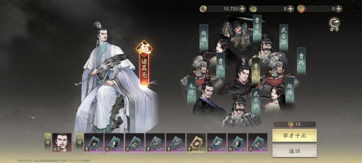 特意切换成桃园三人组准备开抽~100抽出了诸葛,看着还有点红诏,不信邪~结果,继续歪~