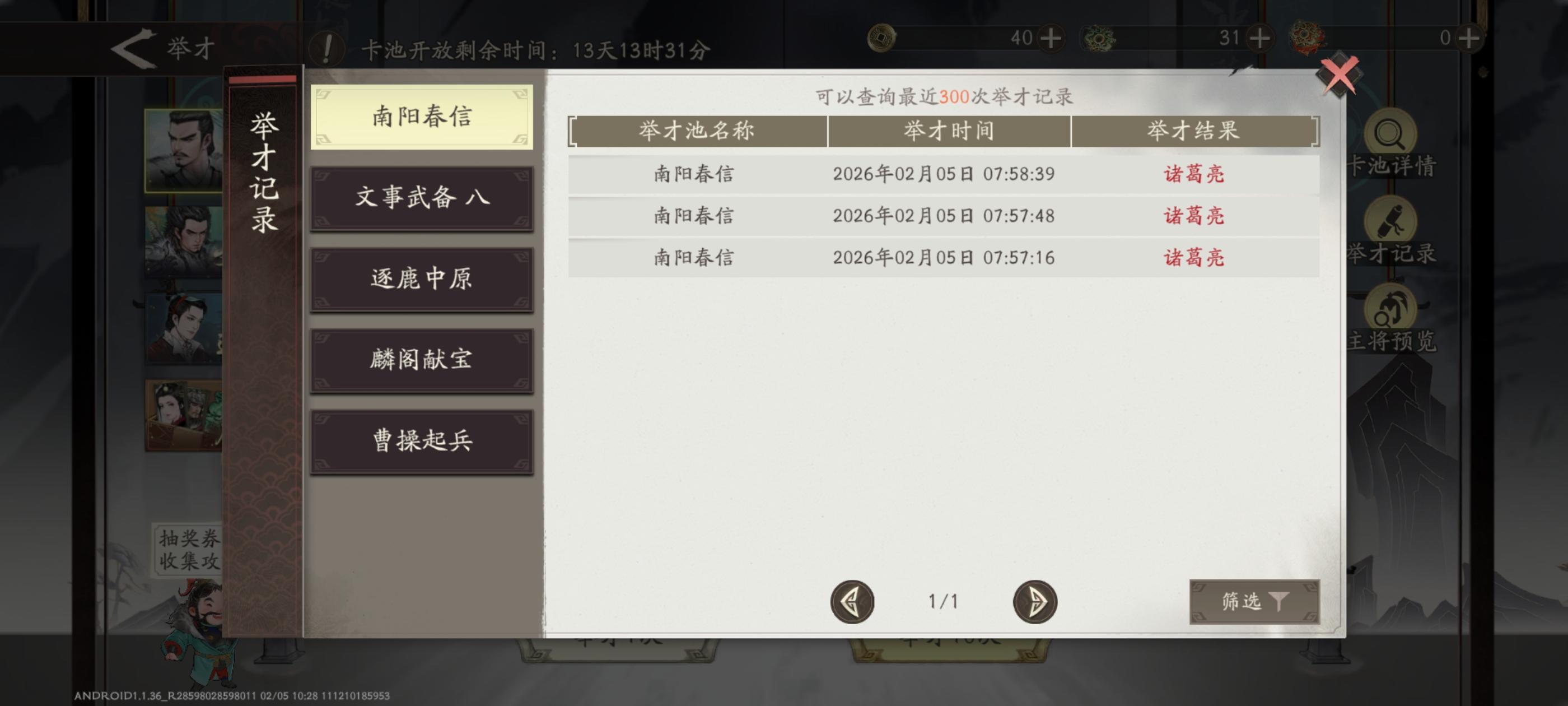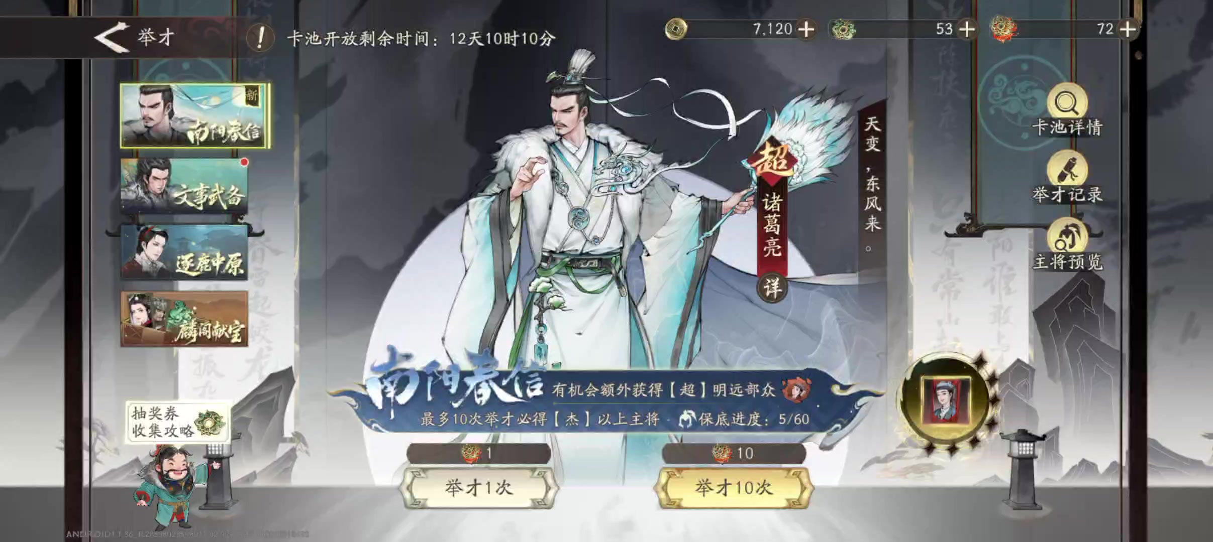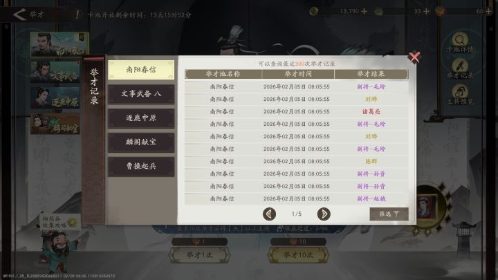 【抽将记录】孔明,入队!剧本等级66 抽到