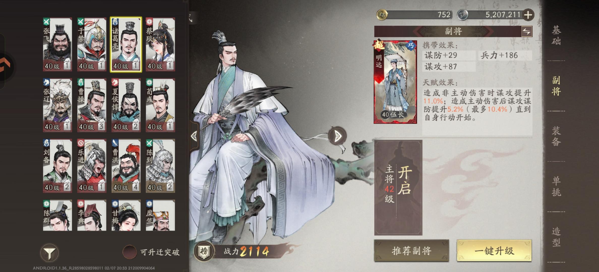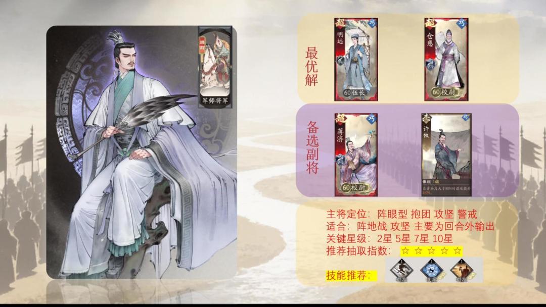 先行总结诸葛亮是一名全能型主将,兼具主动范围输出,阵地防守反击以及团队辅助功能。攻可制敌于千里之外,守可拒敌于方寸之间,辅可提升全军士气。养成方面,虽最终目标是升迁十,但升迁二开始辅助机制全,升迁五加强防守反击打击面,升迁七做到单回合攻守一体,升迁十拔高大量输出上限。可以说完整体验门槛极低,且升迁过程有多个关键节点逐步解锁丞相新的上限,不愧为新春版本高人气人权主将。丞相,咱此生北伐有望!一、基