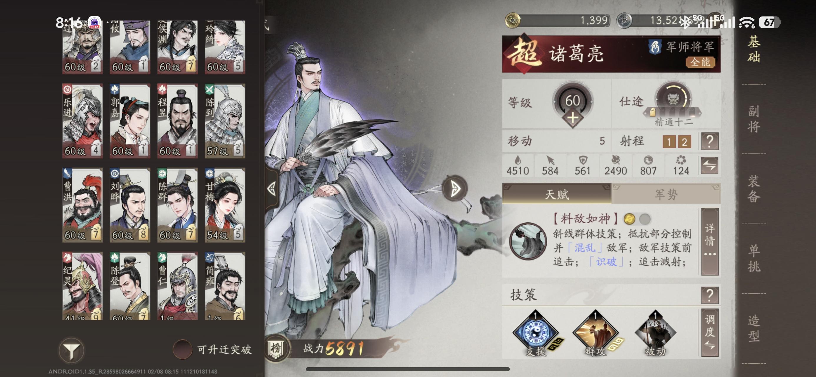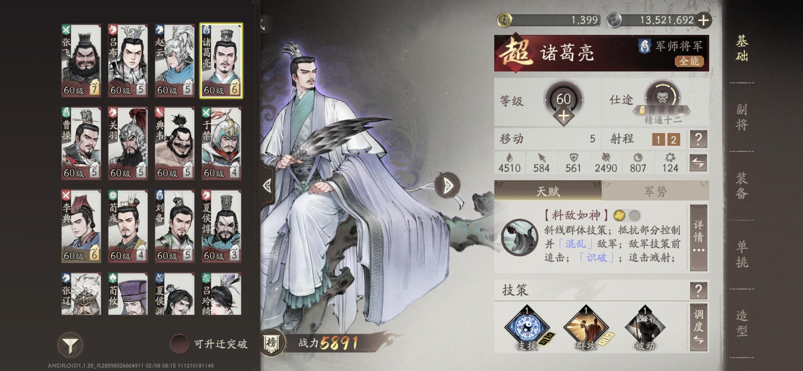 先行总结诸葛亮是一名全能型主将,兼具主动范围输出,阵地防守反击以及团队辅助功能。攻可制敌于千里之外,守可拒敌于方寸之间,辅可提升全军士气。养成方面,虽最终目标是升迁十,但升迁二开始辅助机制全,升迁五加强防守反击打击面,升迁七做到单回合攻守一体,升迁十拔高大量输出上限。可以说完整体验门槛极低,且升迁过程有多个关键节点逐步解锁丞相新的上限,不愧为新春版本高人气人权主将。丞相,咱此生北伐有望!一、基