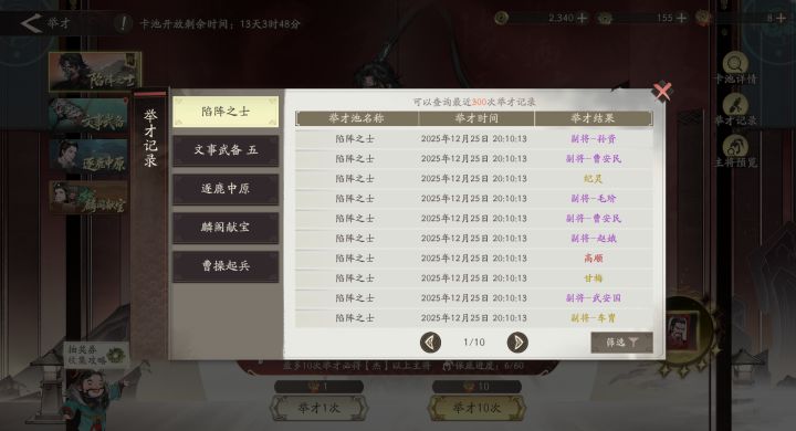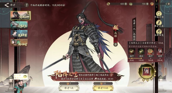 【抽将记录】高顺,入队!剧本等级60 抽到