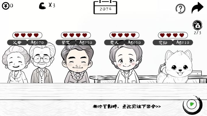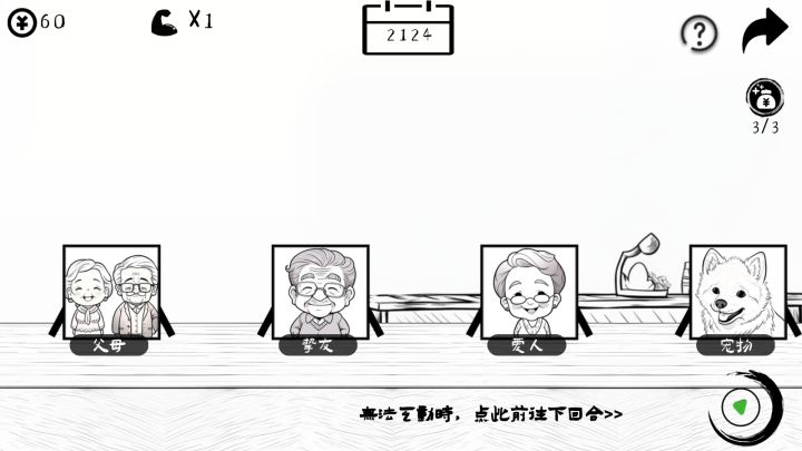 Emmm……怎么说呢~《团圆照》主要玩法类似羊了个羊的选牌三消游戏🎮。一开始,你需要和你珍爱的人建立关系——父母、挚友、爱人和狗🐶。每成功创建一段关系后,你和TA都会有一个基本的亲密度💖。不过,这个亲密度每回合都会下降一点点⬇️,每次下降,你亲密的人就会慢慢变透明,直至消失……💔。所以,你需要维系好和他们的关系哦👥。而为了做到这点,你就得去挣钱💰!挣钱后,可以进行