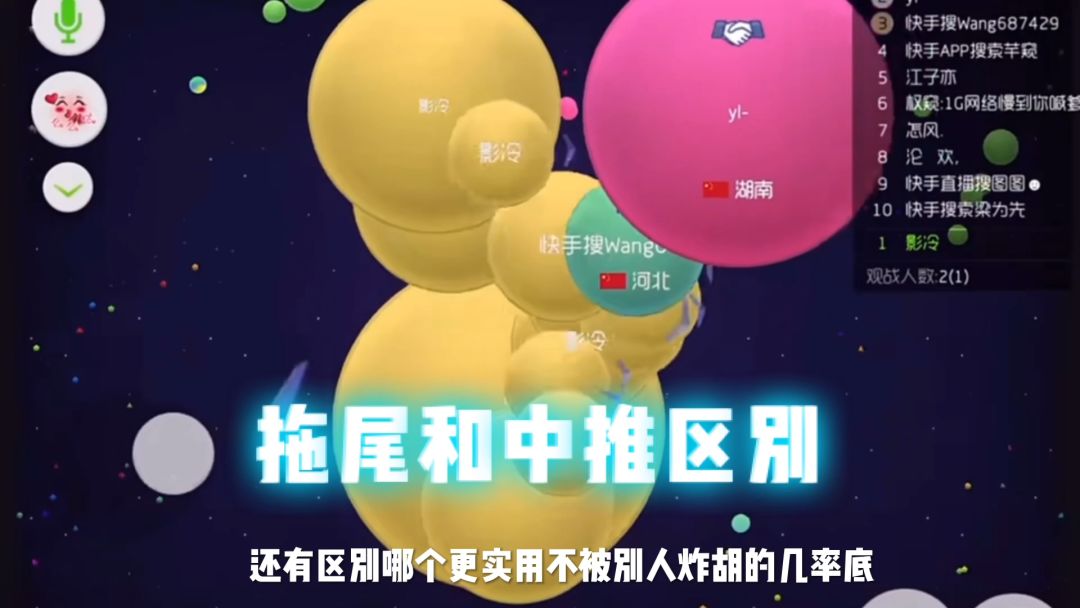1、在中低端局一个旋转合球可以走天下。优点容易在任意一个方位留球,容易聚母球,而且不用在乎队友有分身。缺点是测涨难度较大,得使用交旋。 2、不要盲目的4分吃人,因为4分吃人在固定的情景下成功率才会高,新手把握不了这个时机,容易人没吃到,球也合不上,还会把队友坑没。以我的体验来说,新手打4分,送球率是80%。还有5%能吃到人。就算是稍微会玩一点的,中低端水平玩家,4分送球率依旧很高。 3、当你感觉队