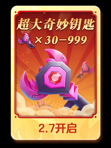 1. 最重要的,保底30超大钥匙 这个是从2月7日开始的,领取的条件是每天上线抽钥匙红包,红包里面保底1把超大,但是也有抽到99把的可能性,到底能抽到多少把就完全看自己的运气了。 注意:在除夕的当天可以领取三倍,所以除夕这天一定要上线!不上线血亏 2. 球球突击队的宝石跟装备 2月2号开始就可以领取宝石了(说是这样说但是其实今天已经有活动界面了,就在活动的那个按钮里面找,专门腾出了一栏来预告,等到