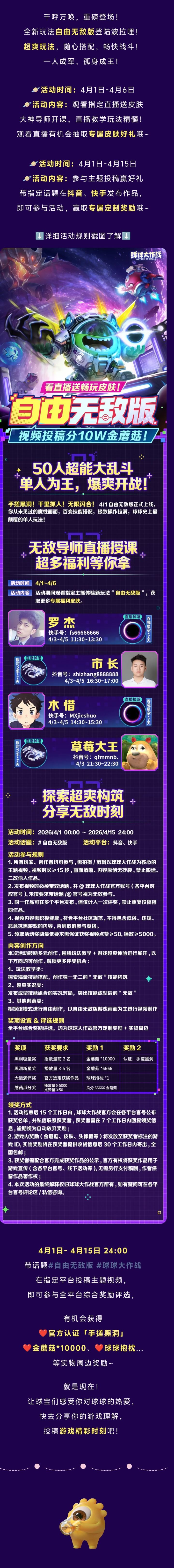 无敌导师直播在线送皮肤!假期投稿瓜分10W金蘑菇!