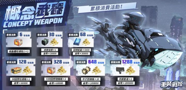 【#重裝戰姬】累積消費活動搶先看!團長大人~伊芙琳又帶來了好康的獨家消息啦!好康活動這麼豐富,差點hold不住啦(/ω\*)……… (/ω•\*)快來一起看看這次是什麼!🎉「累積消費活動」開啟!活動期間累計消費達到一定金額即可獲得額外獎勵!累積消費6貿易券,即可獲得結晶體任選包1×1累積消費30貿易券,即可獲得檢索信標×1、金幣×30000;累積消費68貿易券,即可獲得回想能量×5