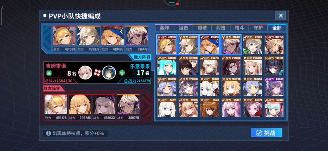 上次发了一个视频,内容是雷纳塔单挑樱花大战BOSS2难度的狂暴王,结果我打了BOSS一半多血光荣战败,视频后面被我删除了。 我得出一个结论,带一个奶妈应该能打过这种百万战力BOSS,这次带僵尸妹挑战樱花大战BOSS2难度的索拉尔,比狂暴王更耐打一点。 当然能如此轻松战胜百万BOSS也得益于狼妹优秀的输出,目前我还没培养完。给的两个芯片都是最低攻击300多那种,不过足够了。 结果证明了我的观点,即使没有原生UR的情况下,只要有僵尸妹这个大众奶妈,配上一个合适的输出就能战胜这种百万战力BOSS。