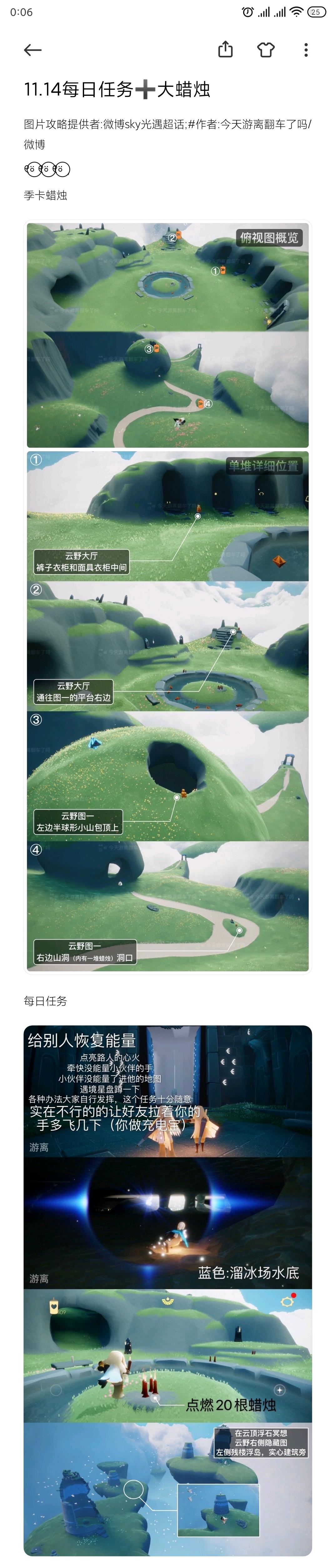 图片攻略提供者:微博sky光遇超话;#作者:今天游离翻车了吗/微博୧⍤⃝ ୧⍤⃝ ୧⍤⃝ 每日任务 大蜡烛