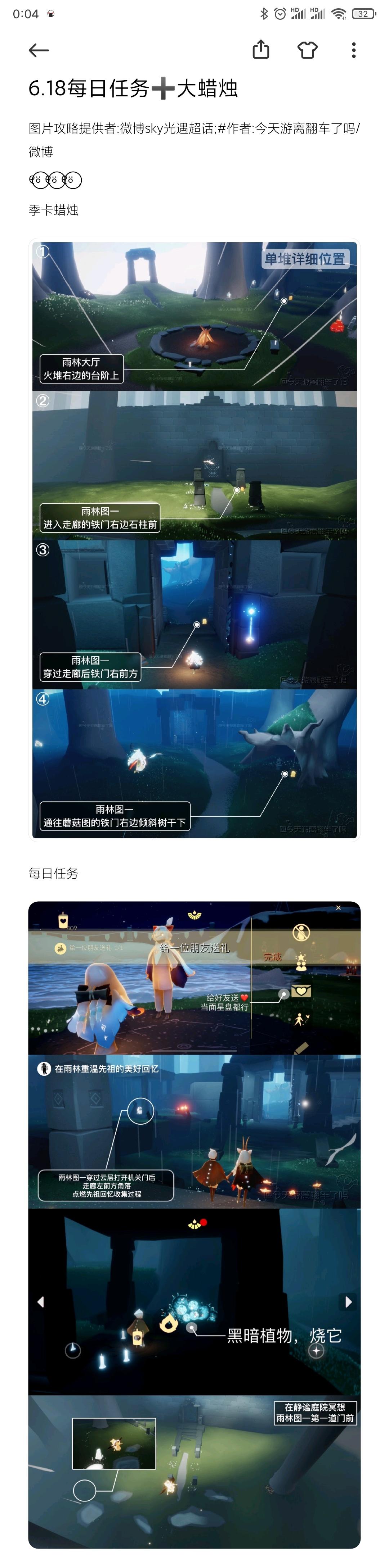 图片攻略提供者:微博sky光遇超话;#作者:今天游离翻车了吗/微博୧⍤⃝ ୧⍤⃝ ୧⍤⃝ , 季卡蜡烛 每日任务 大蜡烛