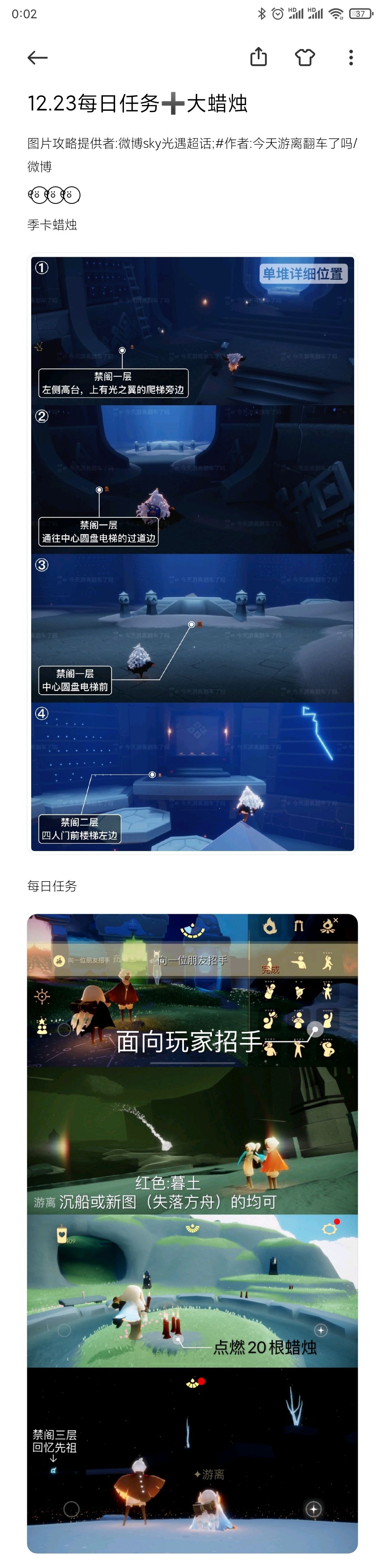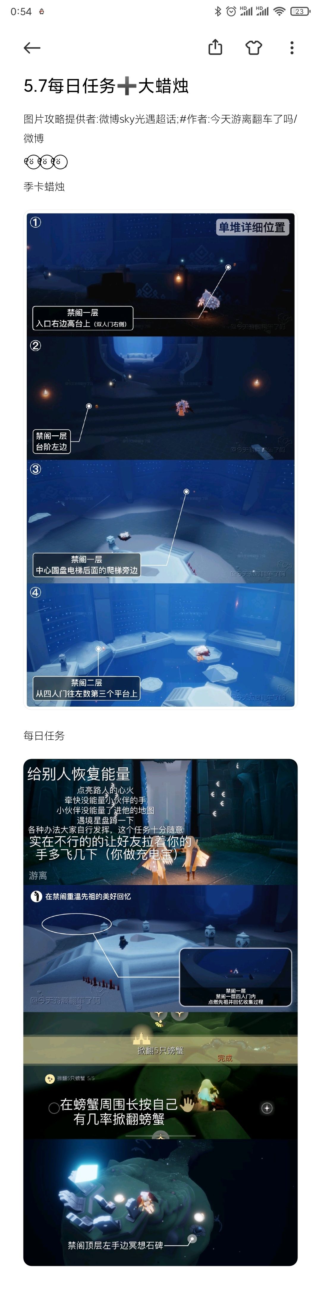图片攻略提供者:微博sky光遇超话;#作者:今天游离翻车了吗/微博୧⍤⃝ ୧⍤⃝ ୧⍤⃝ 季卡蜡烛 每日任务 大蜡烛