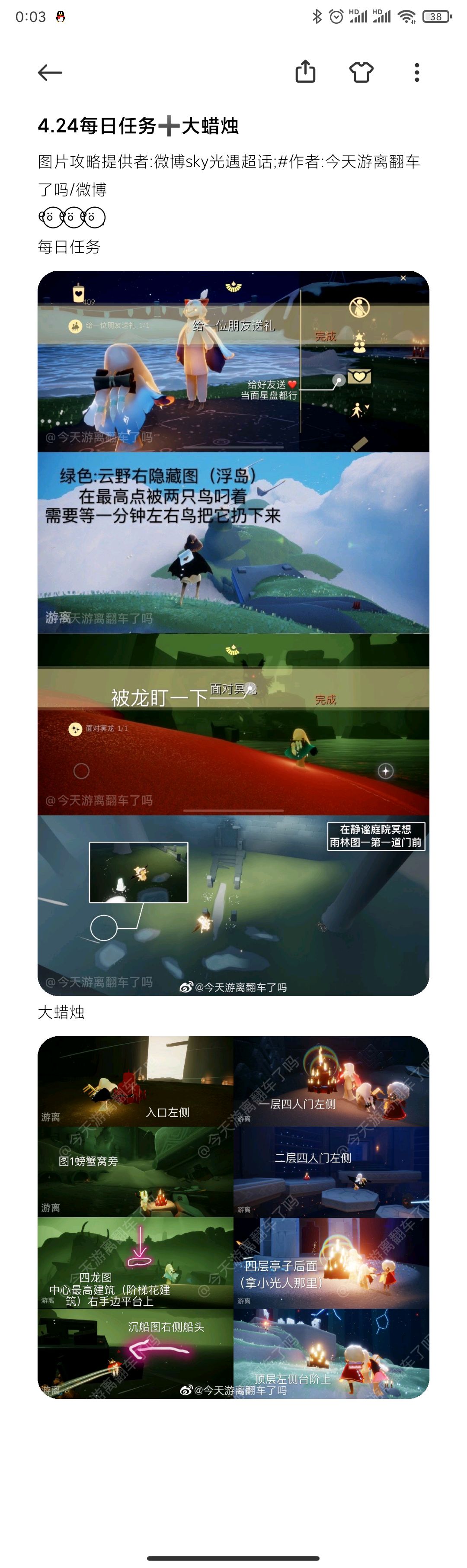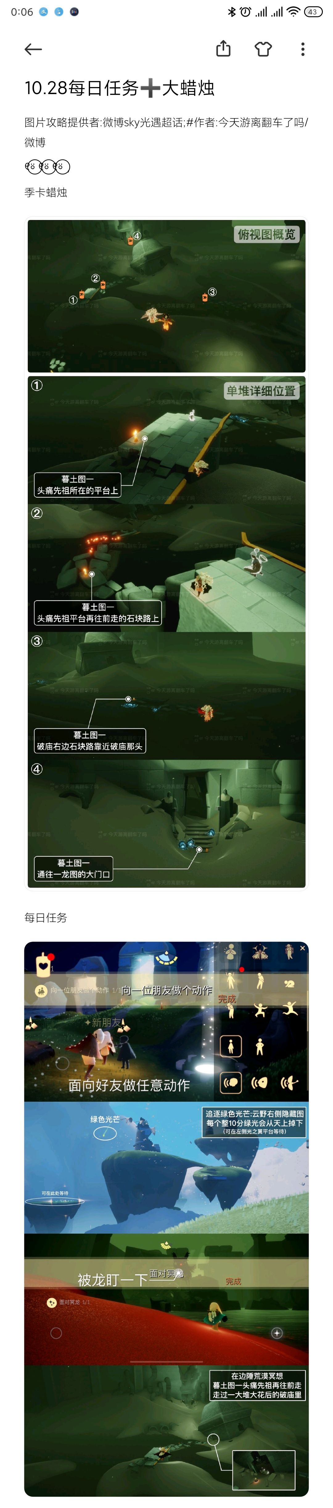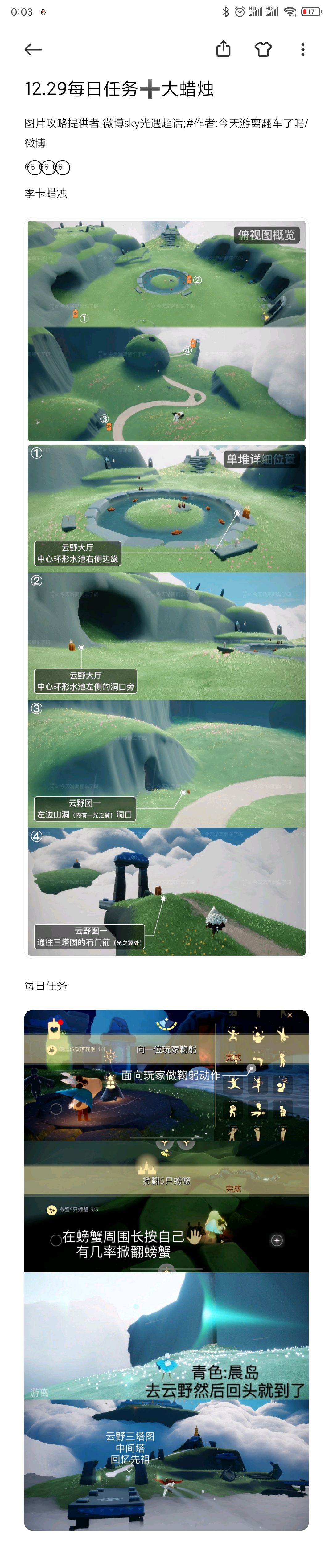 图片攻略提供者:微博sky光遇超话;#作者:今天游离翻车了吗/微博୧⍤⃝ ୧⍤⃝ ୧⍤⃝ , 季卡蜡烛 每日任务 大蜡烛 周年票