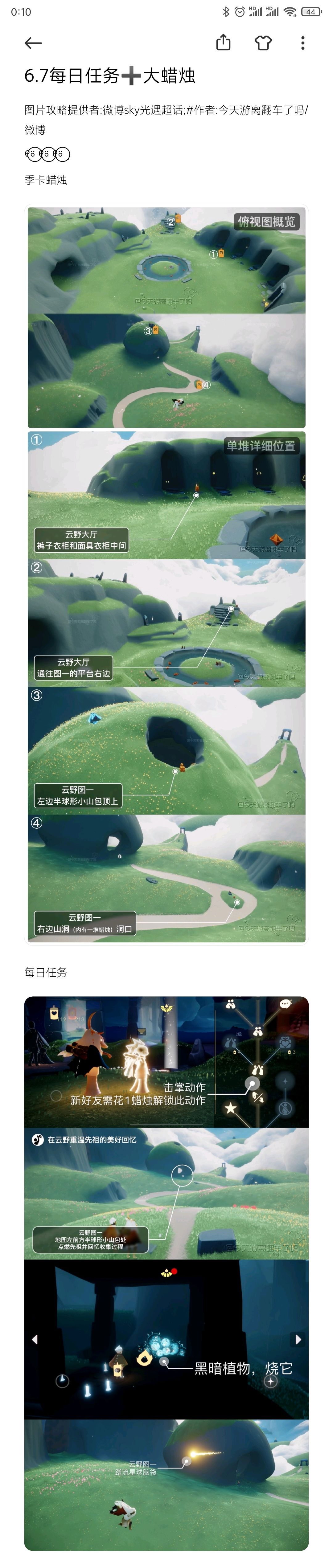 图片攻略提供者:微博sky光遇超话;#作者:今天游离翻车了吗/微博୧⍤⃝ ୧⍤⃝ ୧⍤⃝ , 夏之日代币 季卡蜡烛 每日任务 大蜡烛