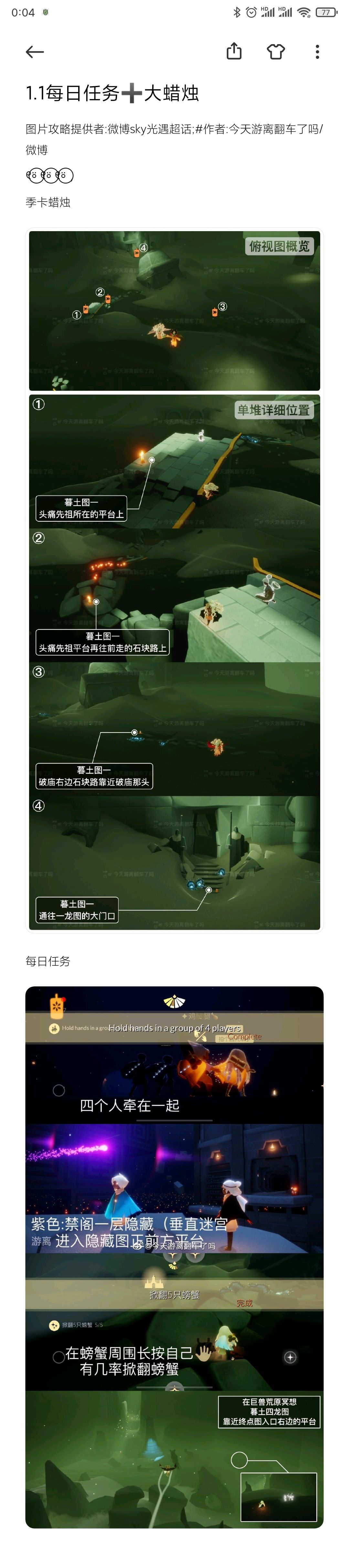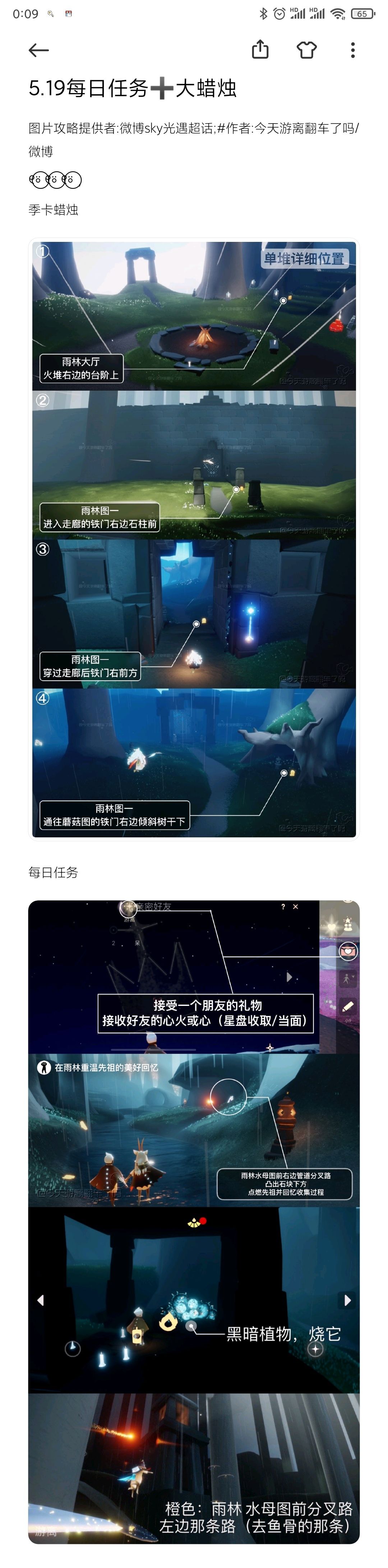 图片攻略提供者:微博sky光遇超话;#作者:今天游离翻车了吗/微博୧⍤⃝ ୧⍤⃝ ୧⍤⃝ , 肉桂卷代币 季卡蜡烛 每日任务 大蜡烛