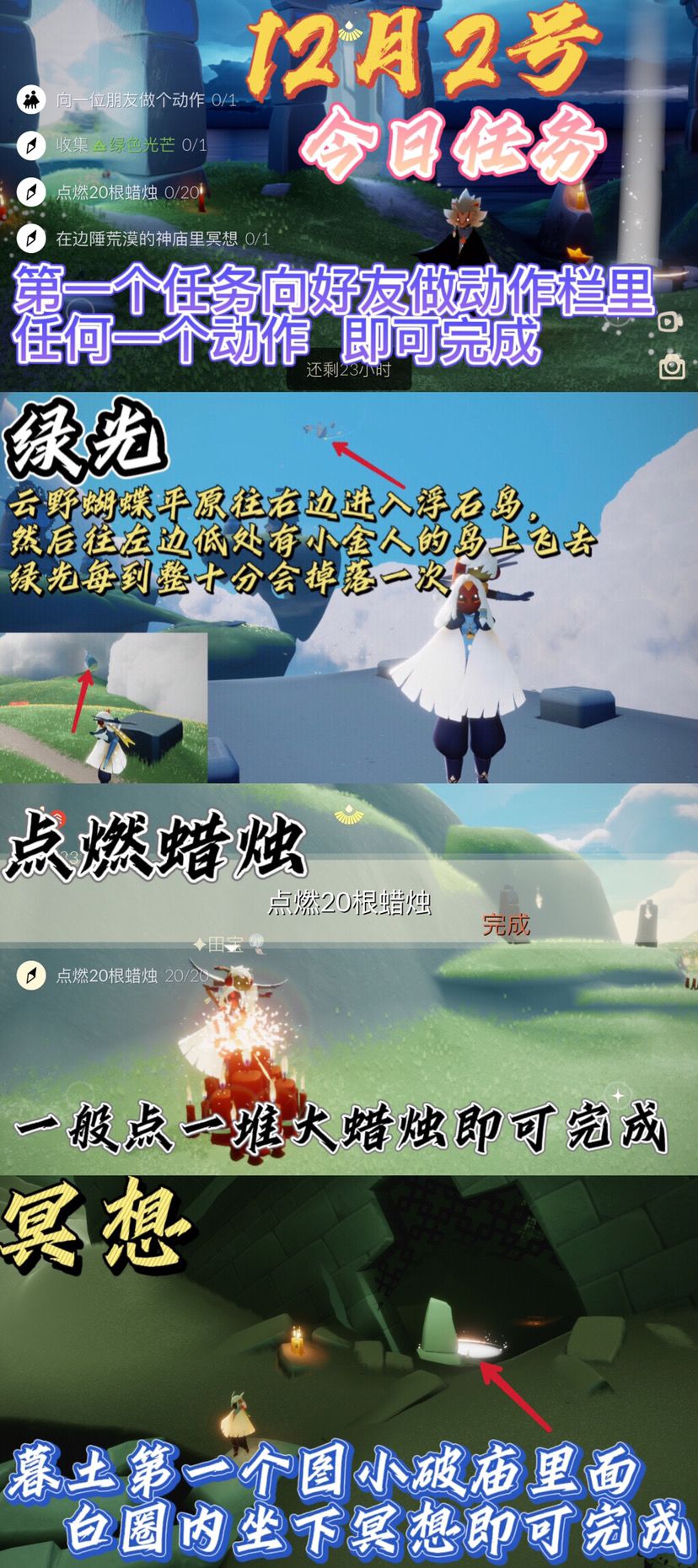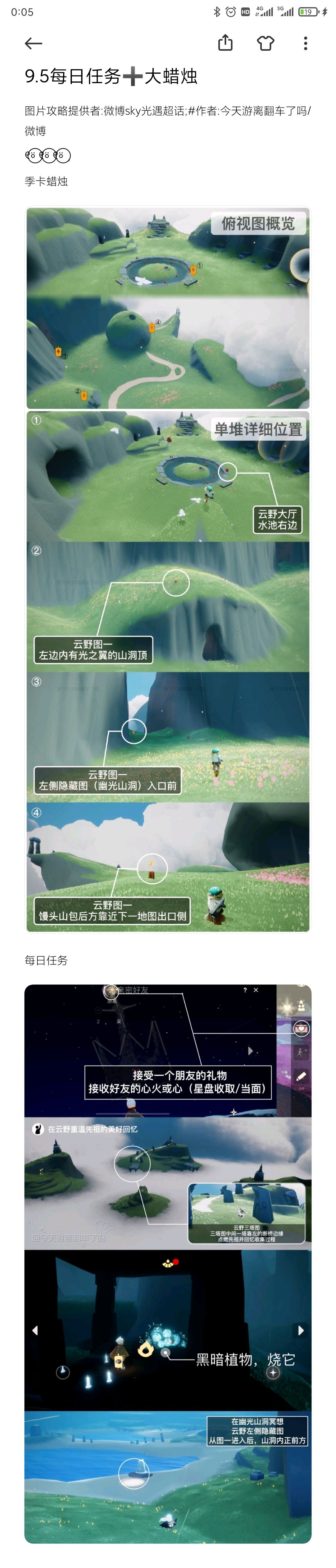 图片攻略提供者:微博sky光遇超话;#作者:今天游离翻车了吗/微博୧⍤⃝ ୧⍤⃝ ୧⍤⃝ , 花憩节代币 每日任务 大蜡烛