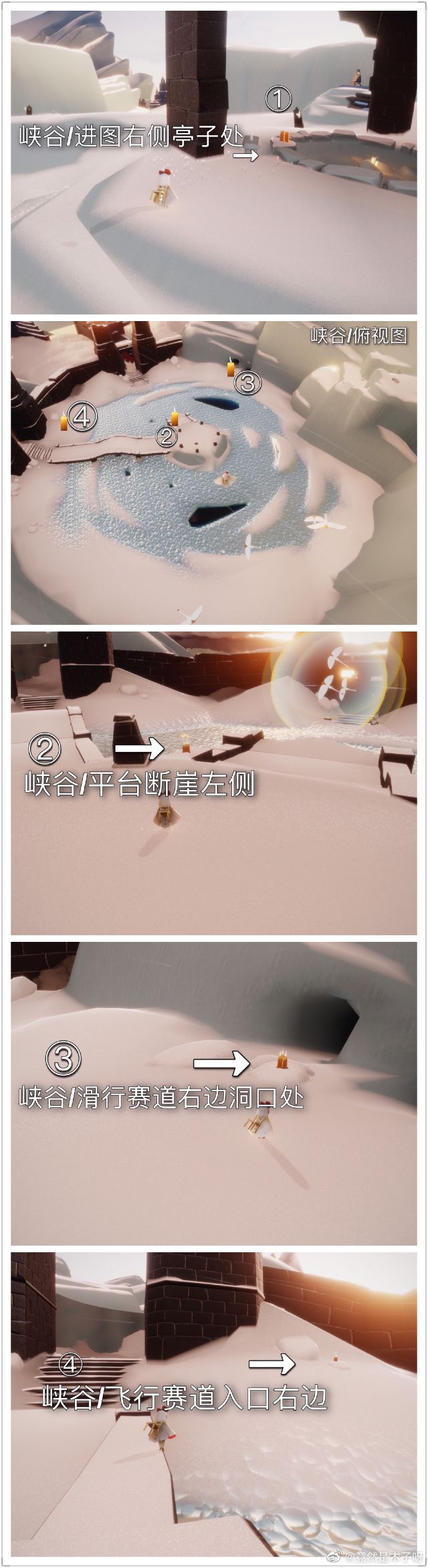 图片攻略提供者:微博sky光遇超话;#作者:今天游离翻车了吗/微博୧⍤⃝ ୧⍤⃝ ୧⍤⃝ , 每日任务 大蜡烛 预估落石点