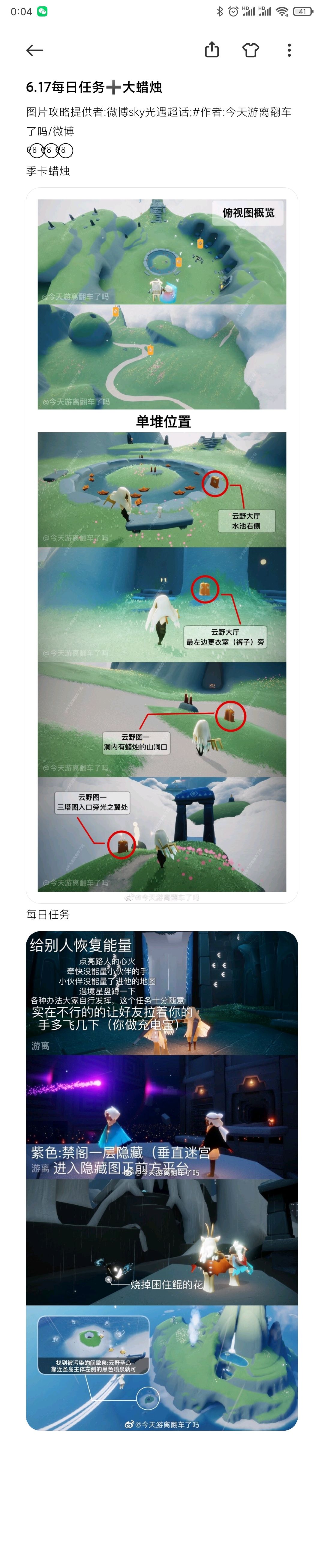 图片攻略提供者:微博sky光遇超话;#作者:今天游离翻车了吗/微博୧⍤⃝ ୧⍤⃝ ୧⍤⃝ , 季卡蜡烛 每日任务 大蜡烛