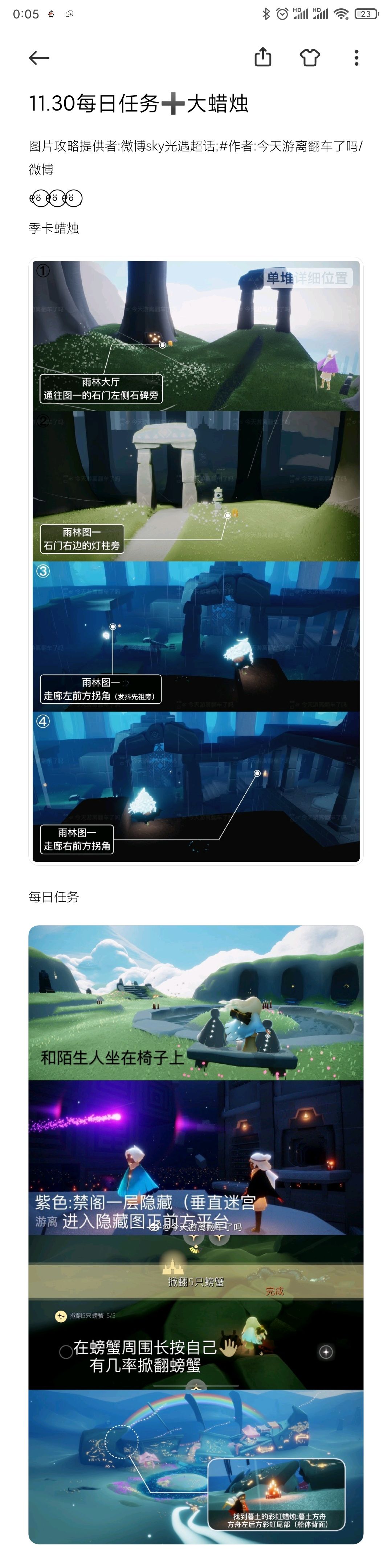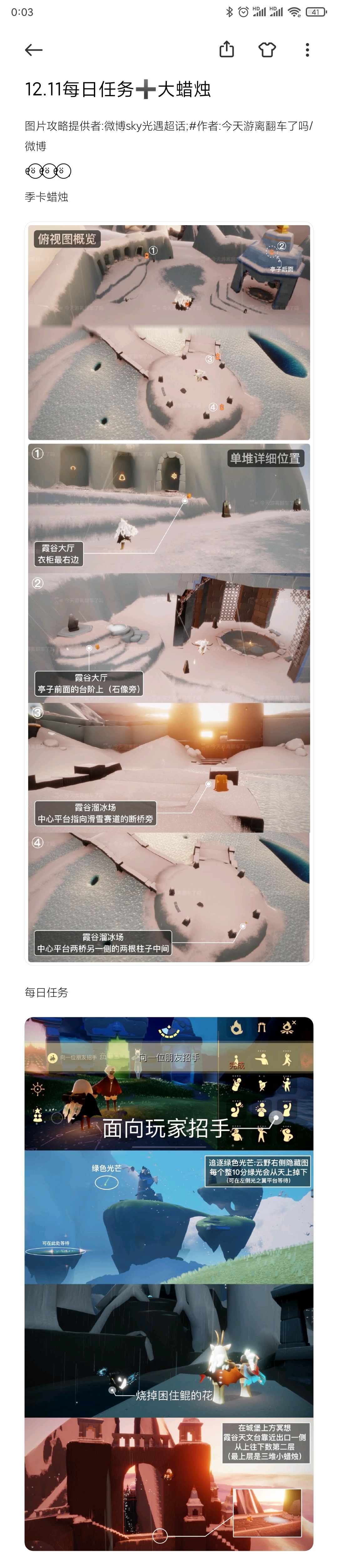 图片攻略提供者:微博sky光遇超话;#作者:今天游离翻车了吗/微博୧⍤⃝ ୧⍤⃝ ୧⍤⃝ , 季卡蜡烛 每日任务 大蜡烛