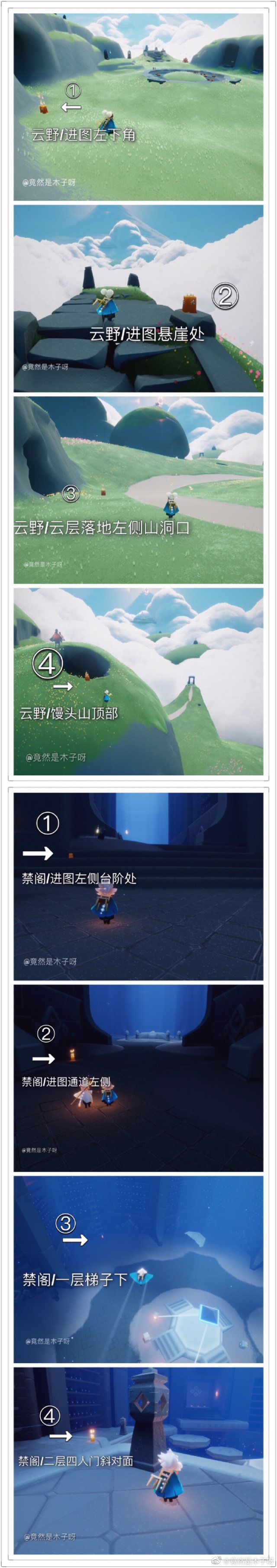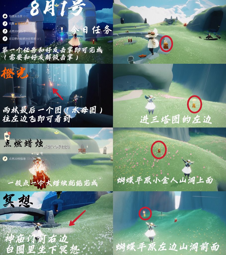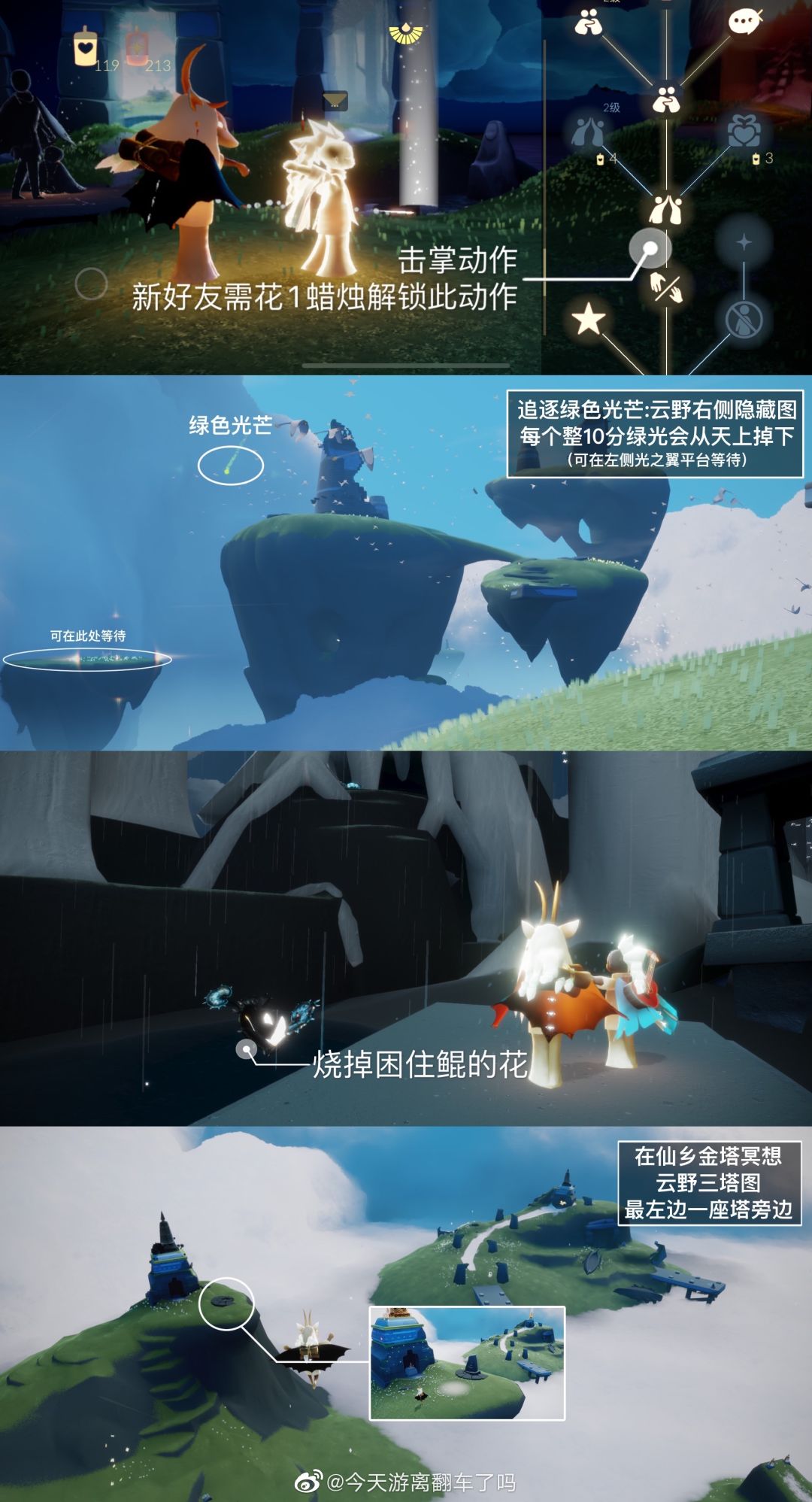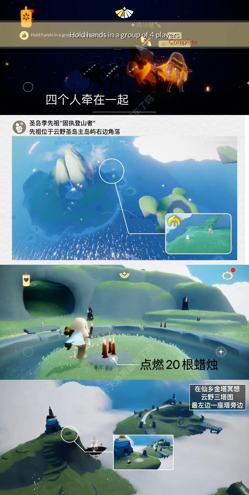 祝您早安、午安、晚安~ 任务图出自微博光遇游离 登山先祖!!! 大蜡烛:全图 免费魔法:璀璨之星