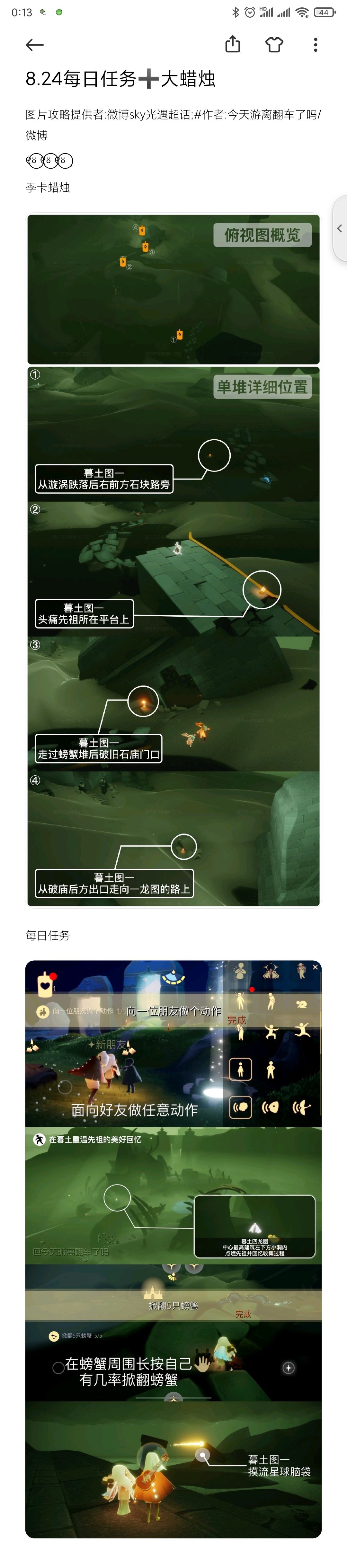 图片攻略提供者:微博sky光遇超话;#作者:今天游离翻车了吗/微博୧⍤⃝ ୧⍤⃝ ୧⍤⃝ , 季卡蜡烛 每日任务 大蜡烛