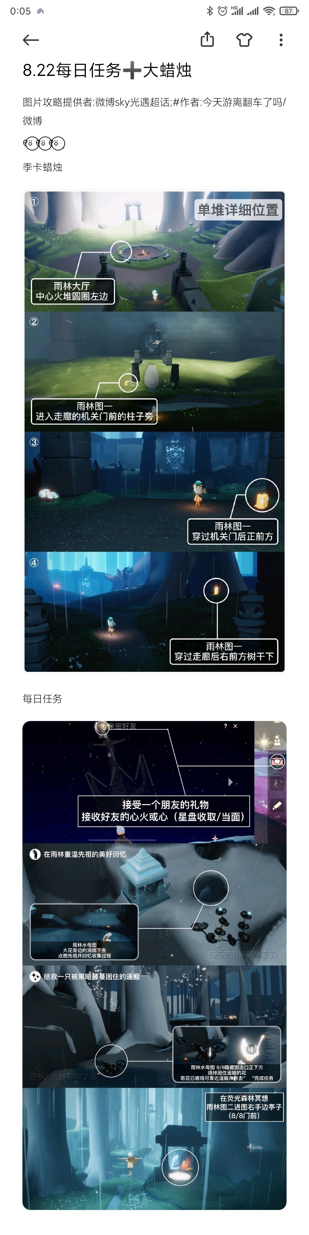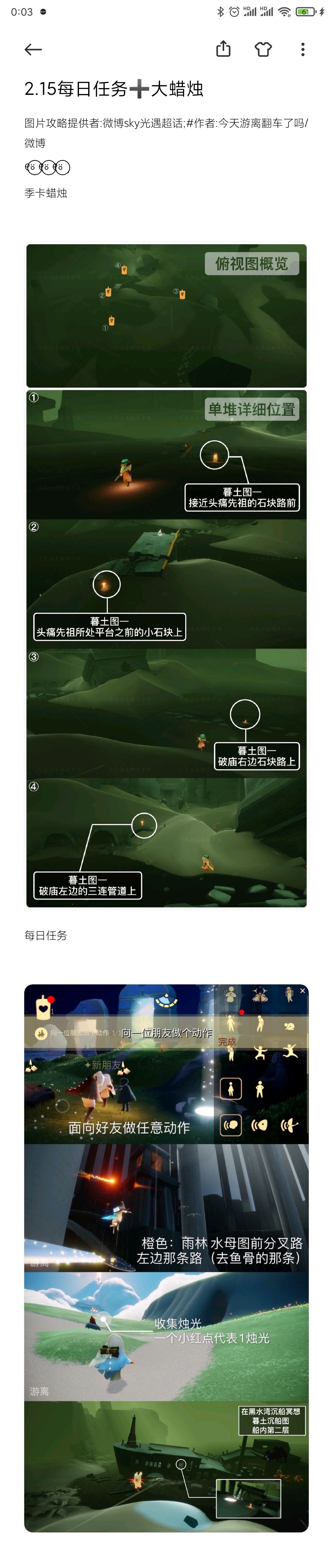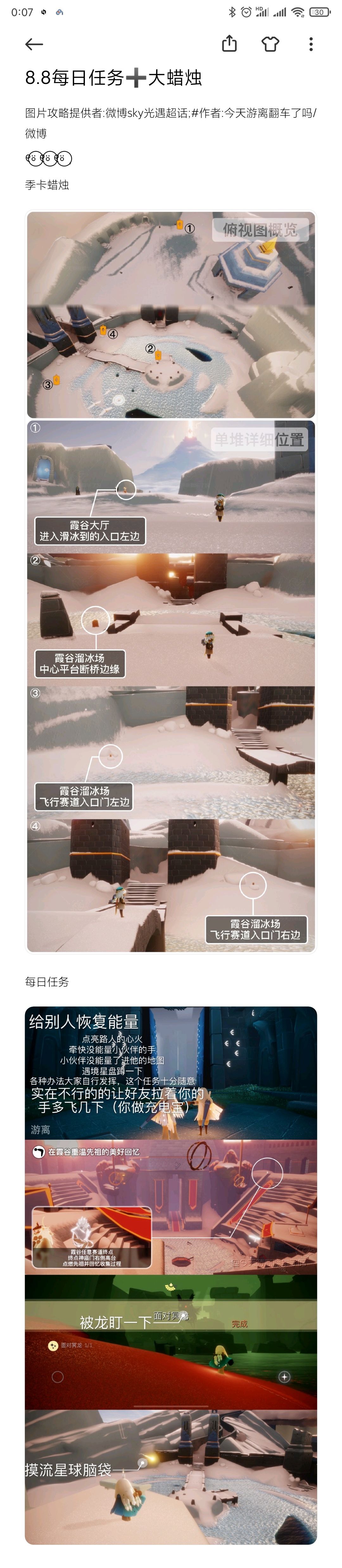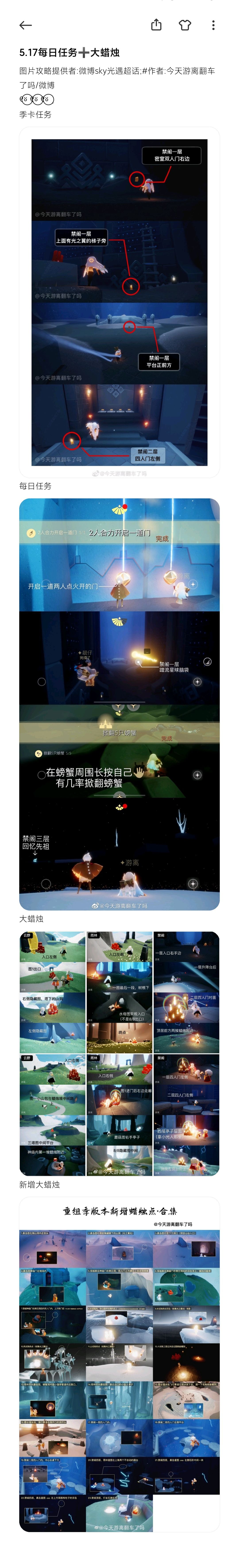 图片攻略提供者:微博sky光遇超话;#作者:今天游离翻车了吗/微博୧⍤⃝ ୧⍤⃝ ୧⍤⃝ , 季卡蜡烛 每日任务 大蜡烛 周年票