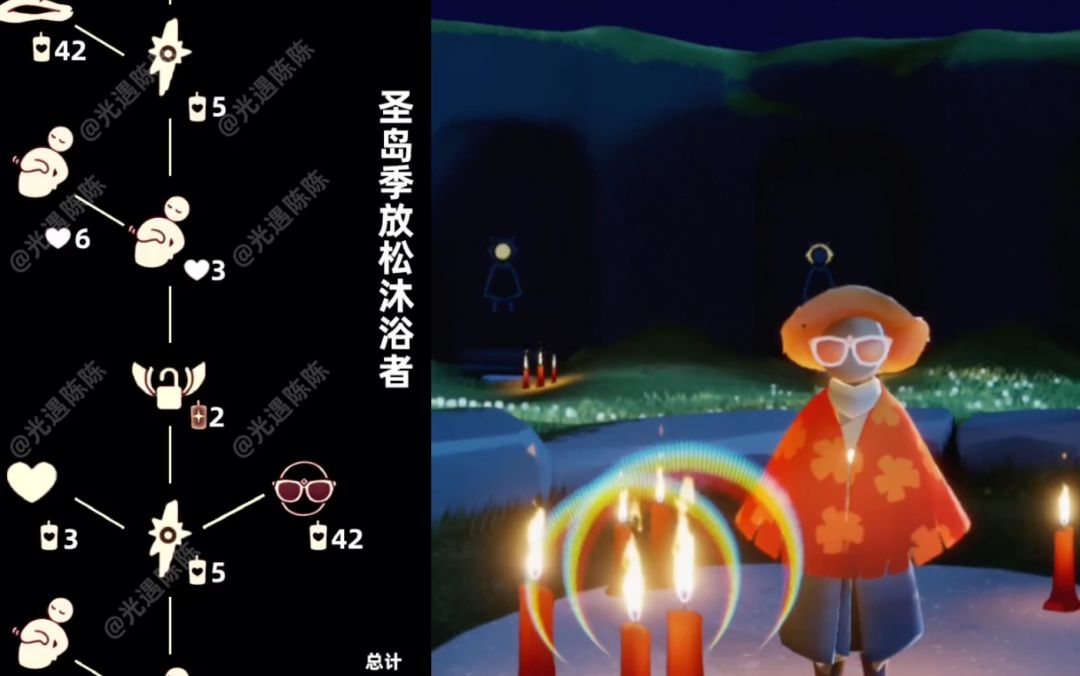 9月21日-9月27日 光崽们准备好蜡烛了吗[表情_开心] 集体复刻:迎宾侍者,固执登山者,嬉笑炮手,蟹语者 先祖都在云峰地图内,找过先祖才可以兑换物品 旅拍先祖复刻期间日常任务增加:与旅拍先祖合照 兑换树图仅供参考 图片来自大神@柠檬味的2546(~侵~删) 先祖位置